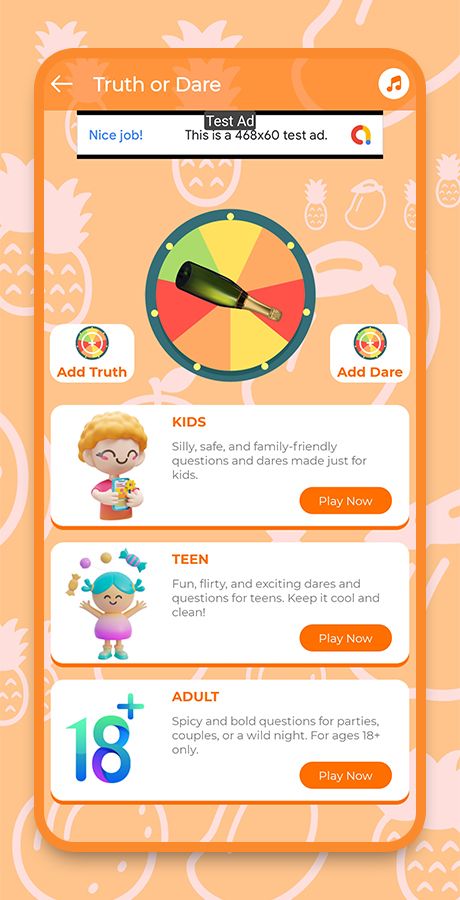 🍾 Truth or Dare ♻️ :- Play the ultimate Truth or Dare game for all ages! Choose from Kids, Teen, or Adult modes for fun, challenging, and sometimes crazy questions and dares.