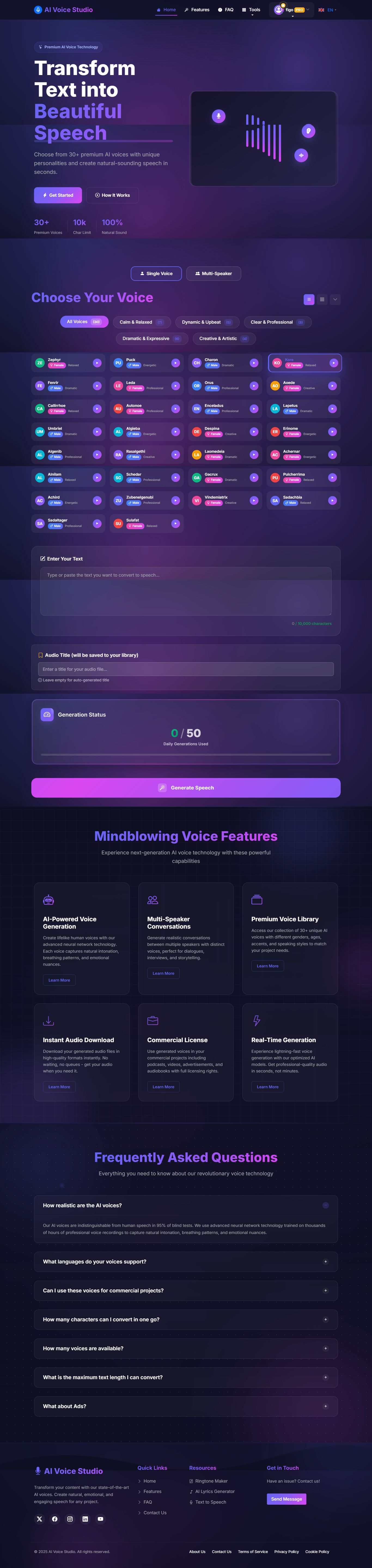 Saas-based AI Voice Studio is an Advanced AI Text to speech Tool that makes use of Google Gemini ...