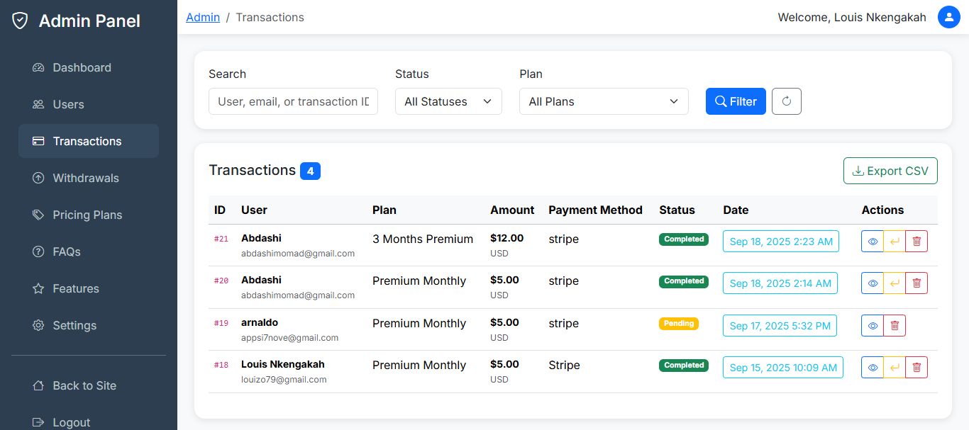 This project has been upgraded to saas-based offering the admin to not only earn revenu via Ad placements but by charging users via subscription plans.