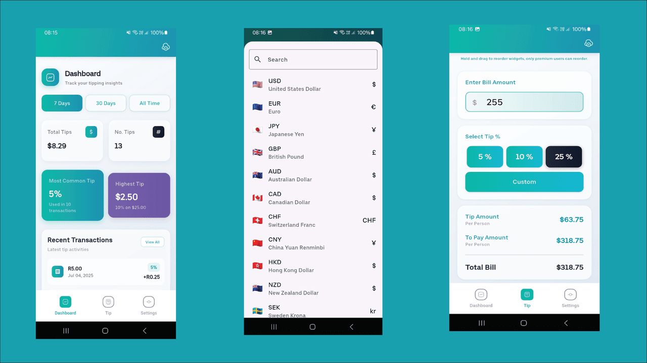 Designed with beautiful UI animations and packed with smart features, TipFlex is more than just a tip calculator – it’s your personal tipping assistant.
