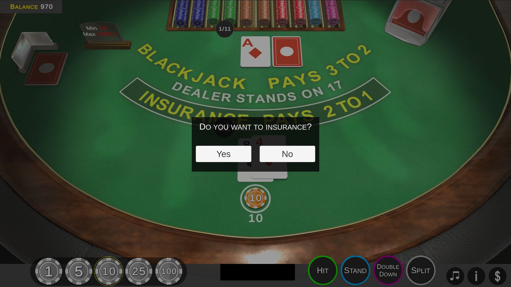 Single-hand Blackjack game made in Unity 3D. Ideal for mobile or WebGL. Easy to reskin, clean cod...