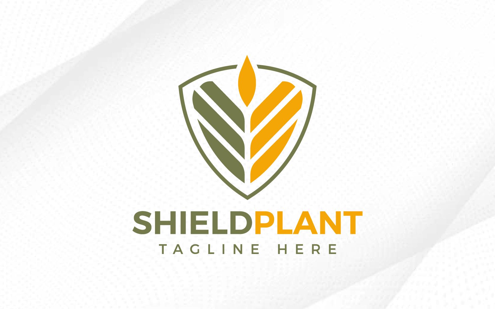 Agriculture Plant With Shield Logo Design, protects the farm from harmful bugs, insects, and humans creating bad things crop grain