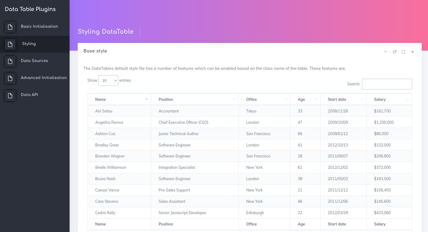 A complete suite for displaying and managing tabular data in web applicationsData Table Plugin jQuery