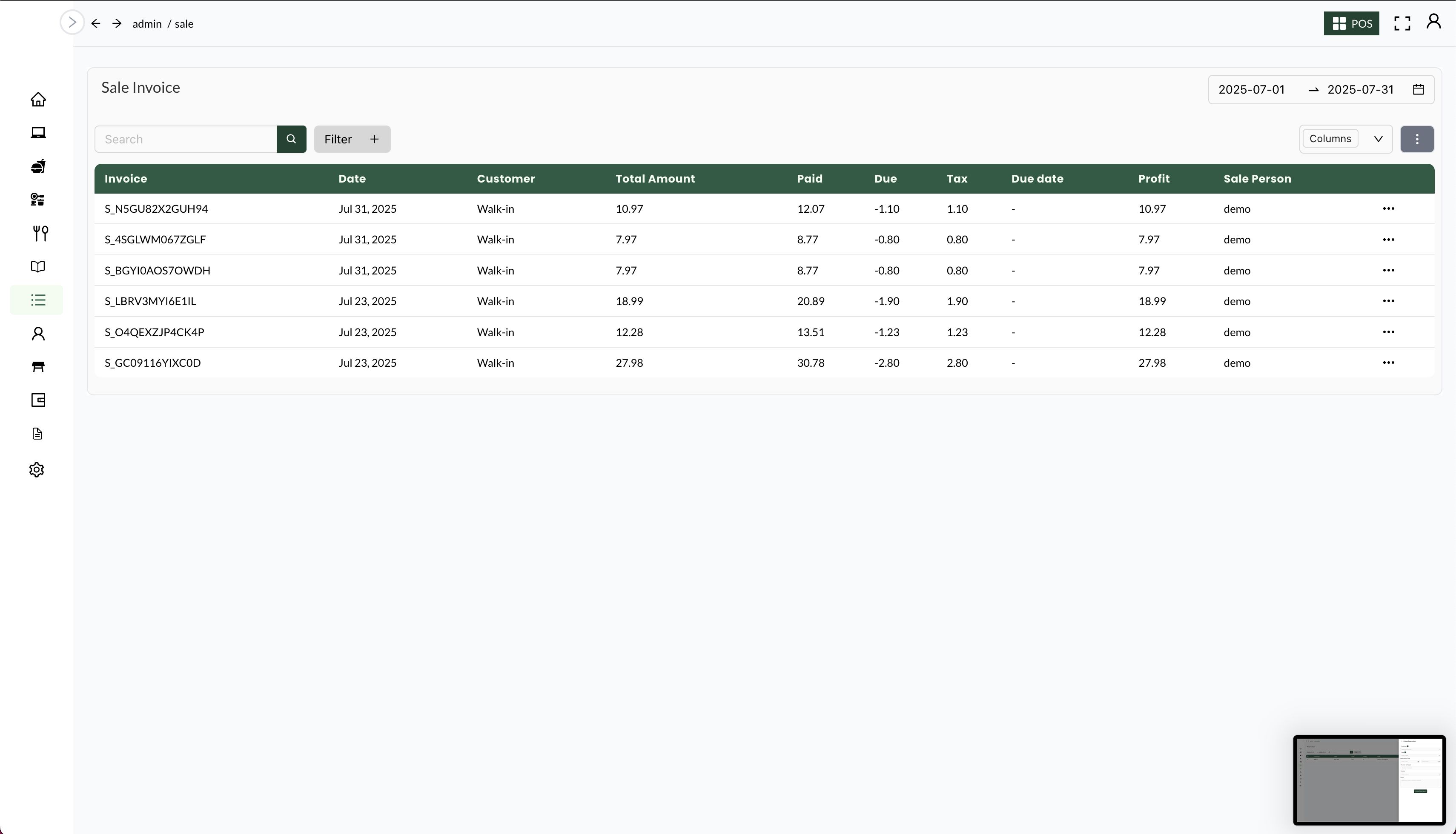 Generate detailed invoices with profit, tax, and customer details at your fingertips.