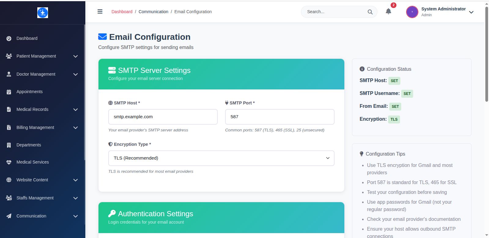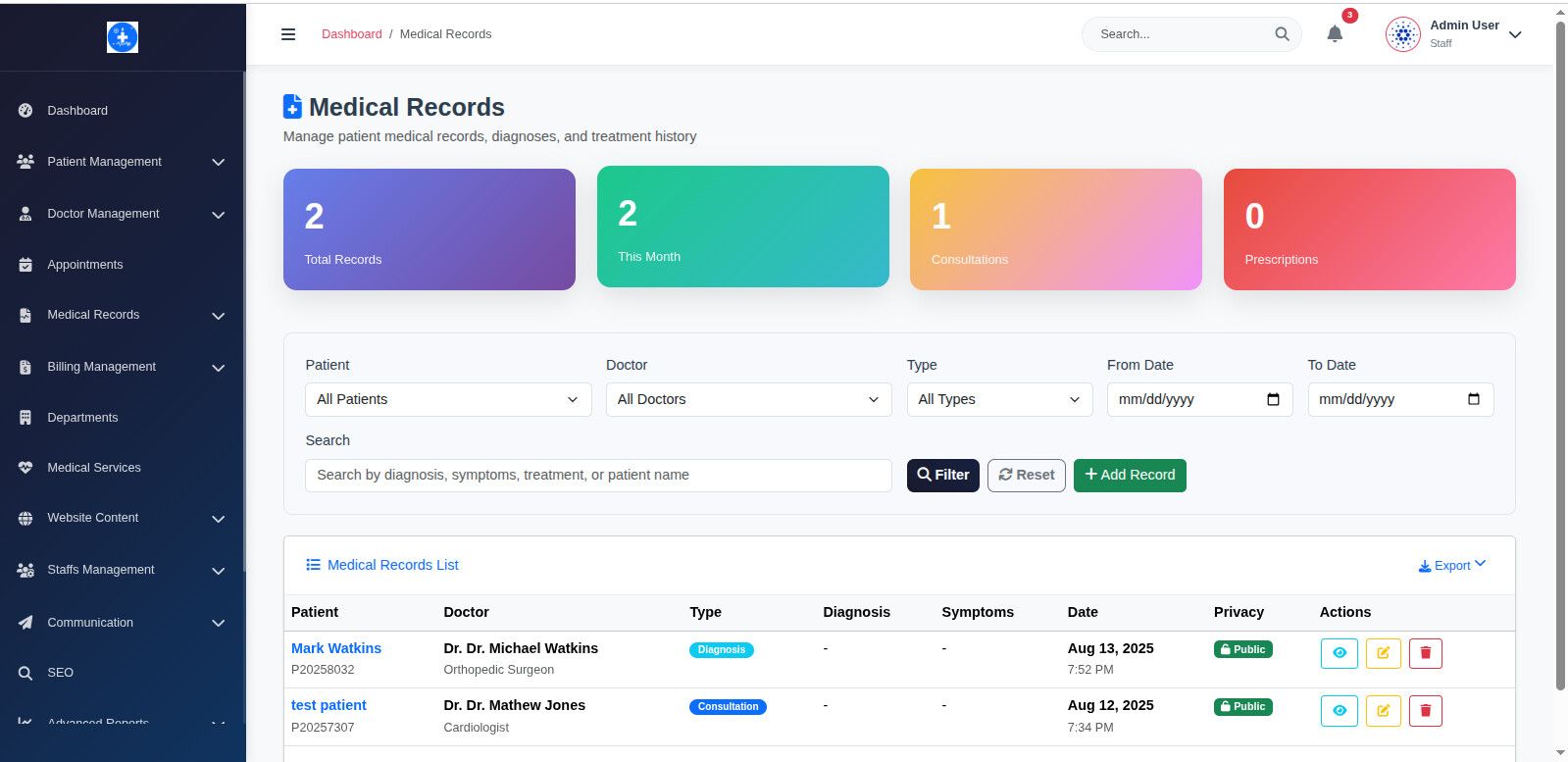 👨⚕️ Staff Portal: https://yourdomain.com/login