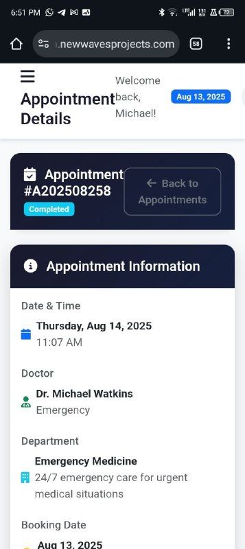 Supports online video appointment, like ZOOM,GOOGLE CHAT ETC.(In the next update) - Real-time Availability: Dynamic doctor schedule checking