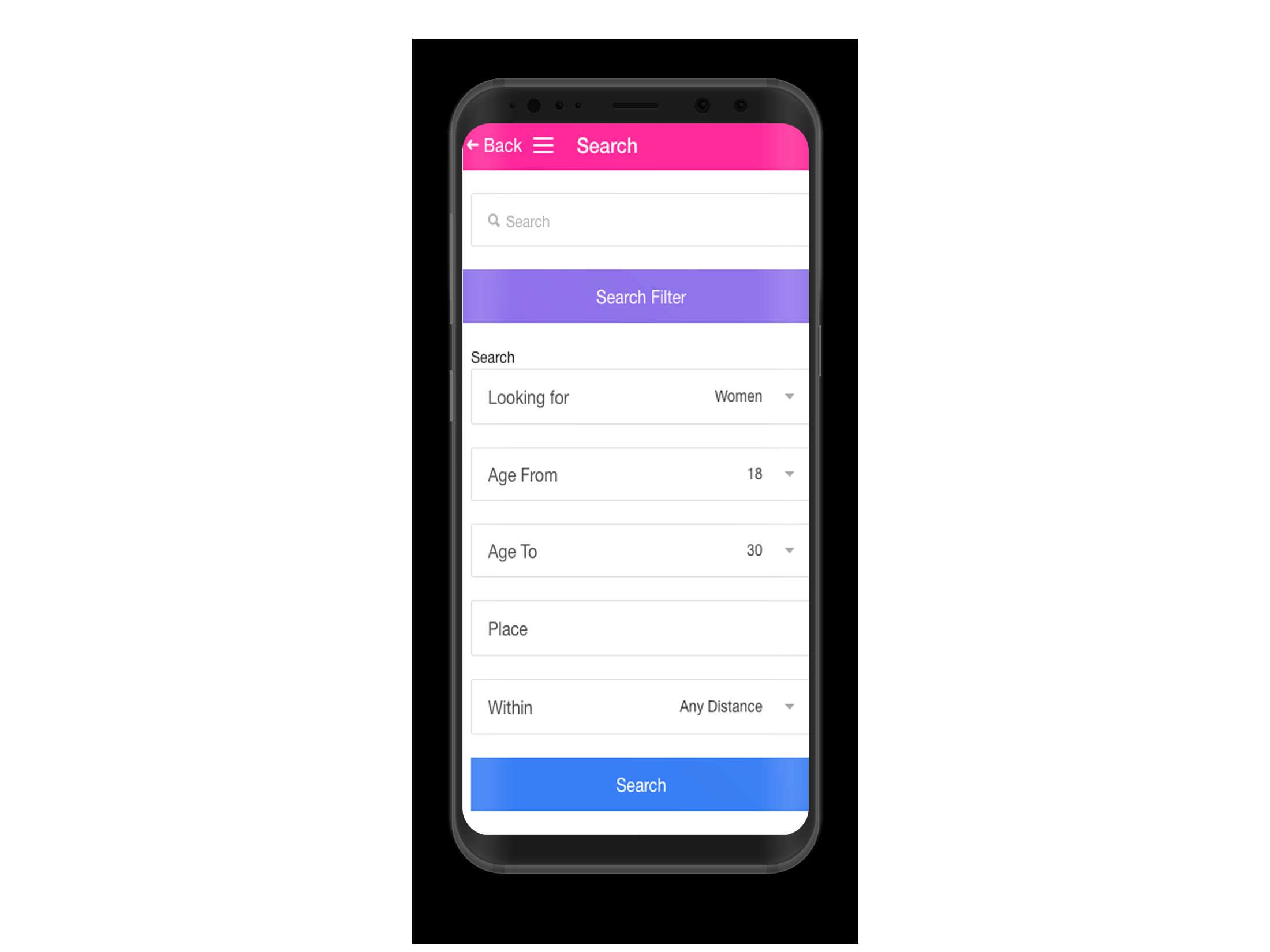 - Search users using age and place with distance limit