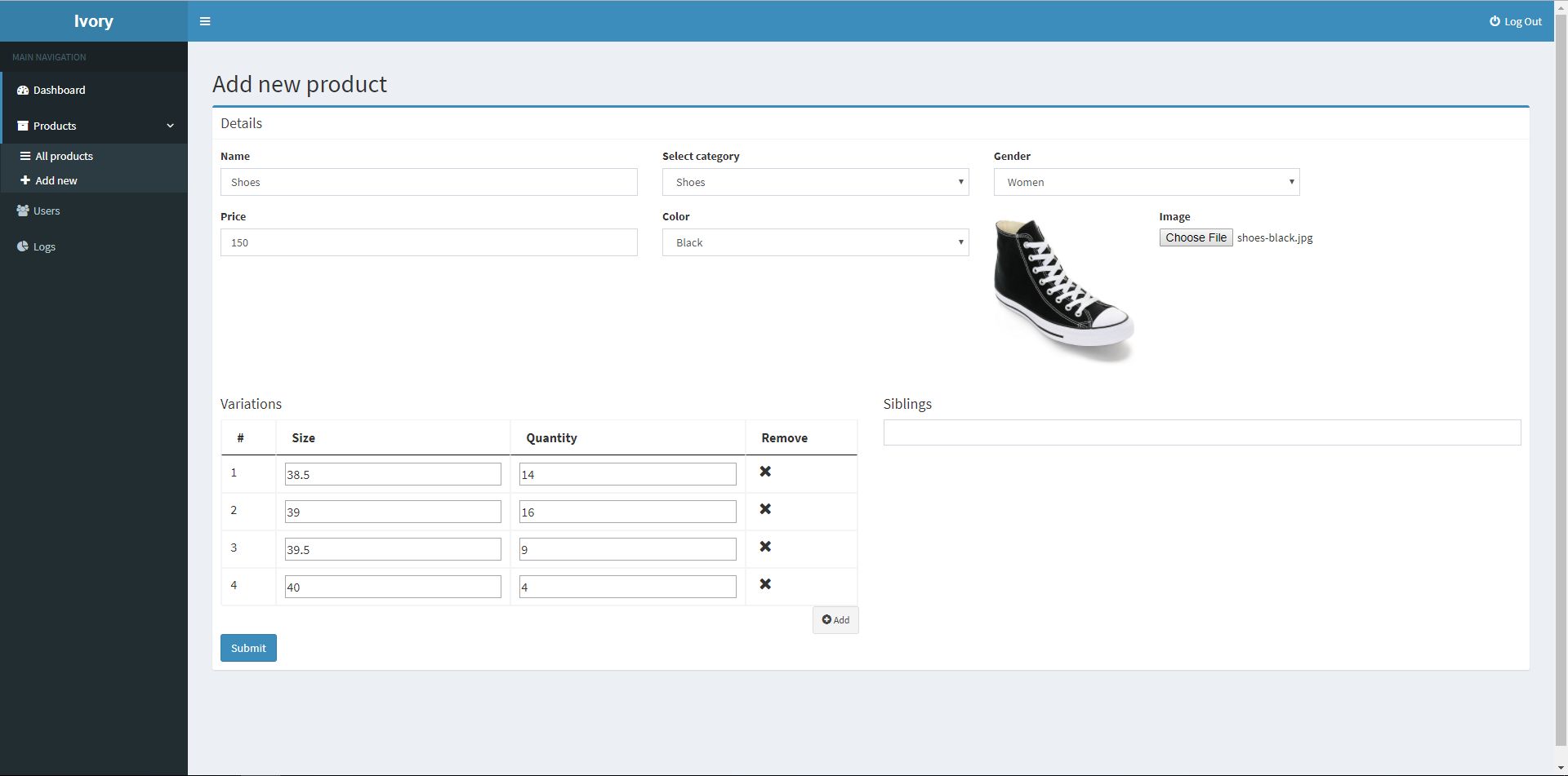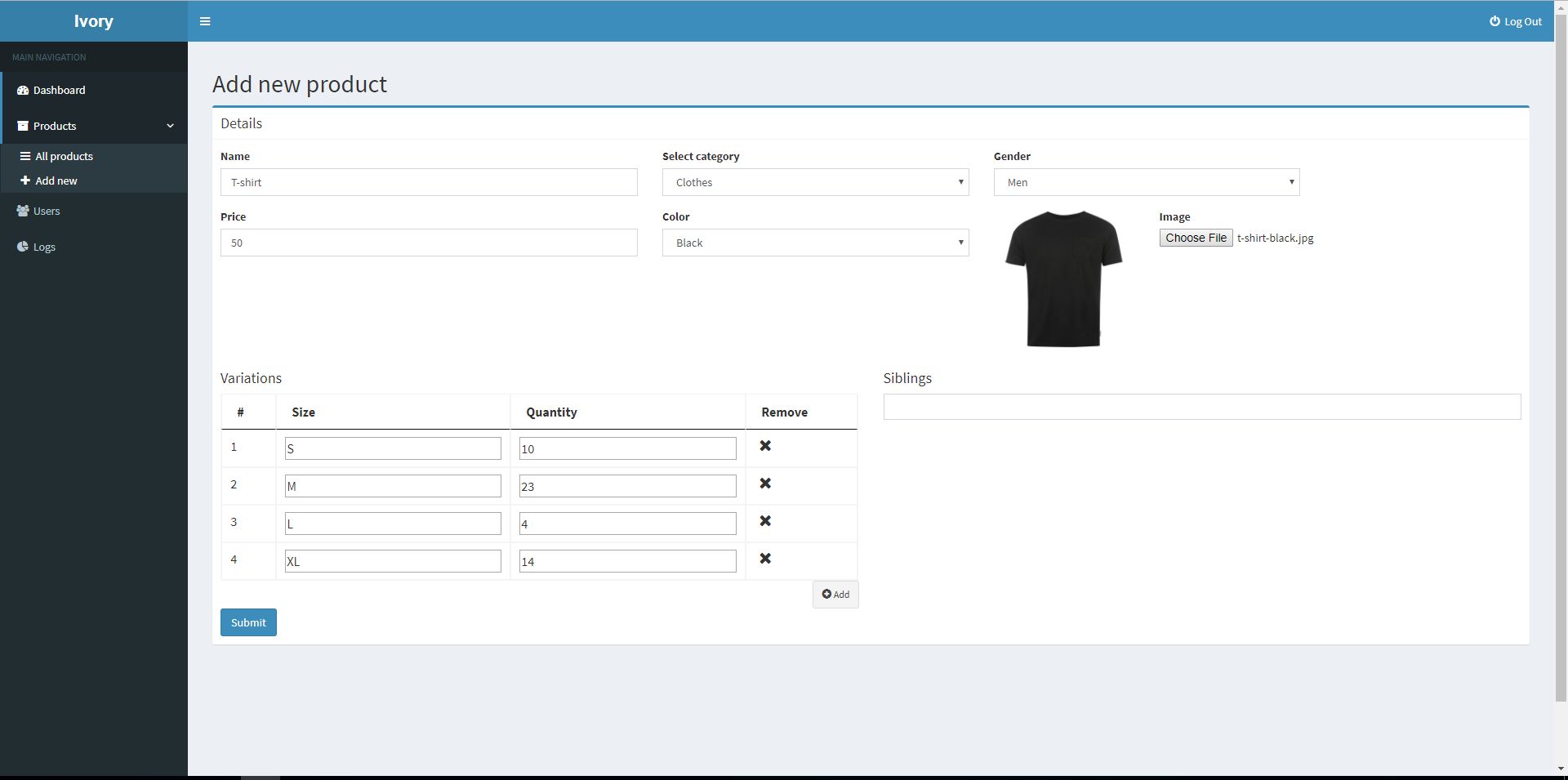 Ivory Admin Panel is a CMS (Content Management System) that gives you the possibility to manage the Ivory Shop applications.