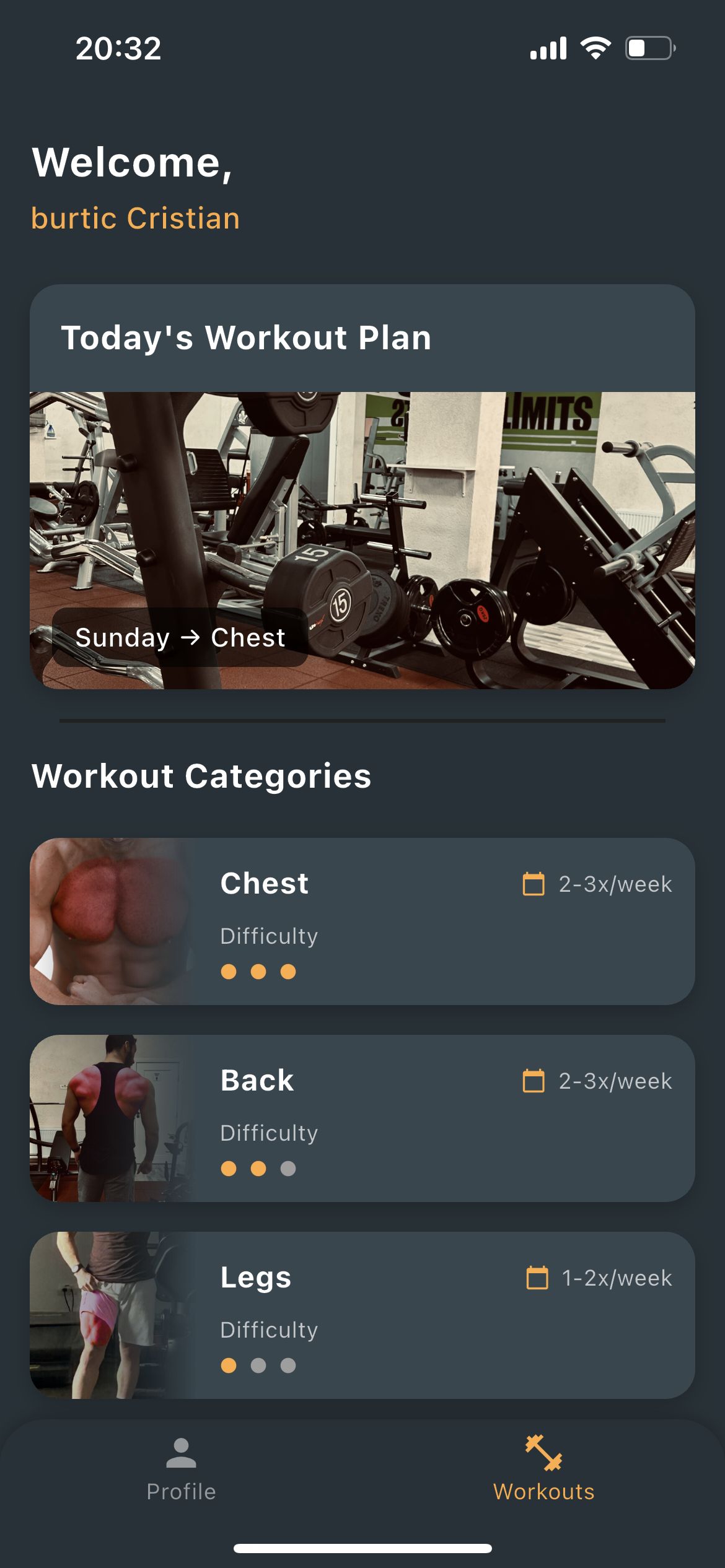 Source Code for a fitness app that allow users to watch videos with exercises for every muscle group