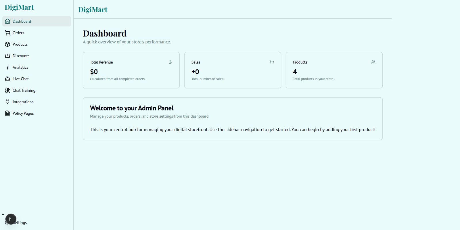 DigiMart is a modern Next.js e-commerce site built for selling digital products. It includes a responsive storefront, a prebuilt AI chatbot for customer support, and a secure admin panel to manage products, orders, and content. Built using React, Next.js, TailwindCSS, and ShadCN UI, DigiMart provides a fast, customizable, and scalable solution for startups, agencies, and developers.