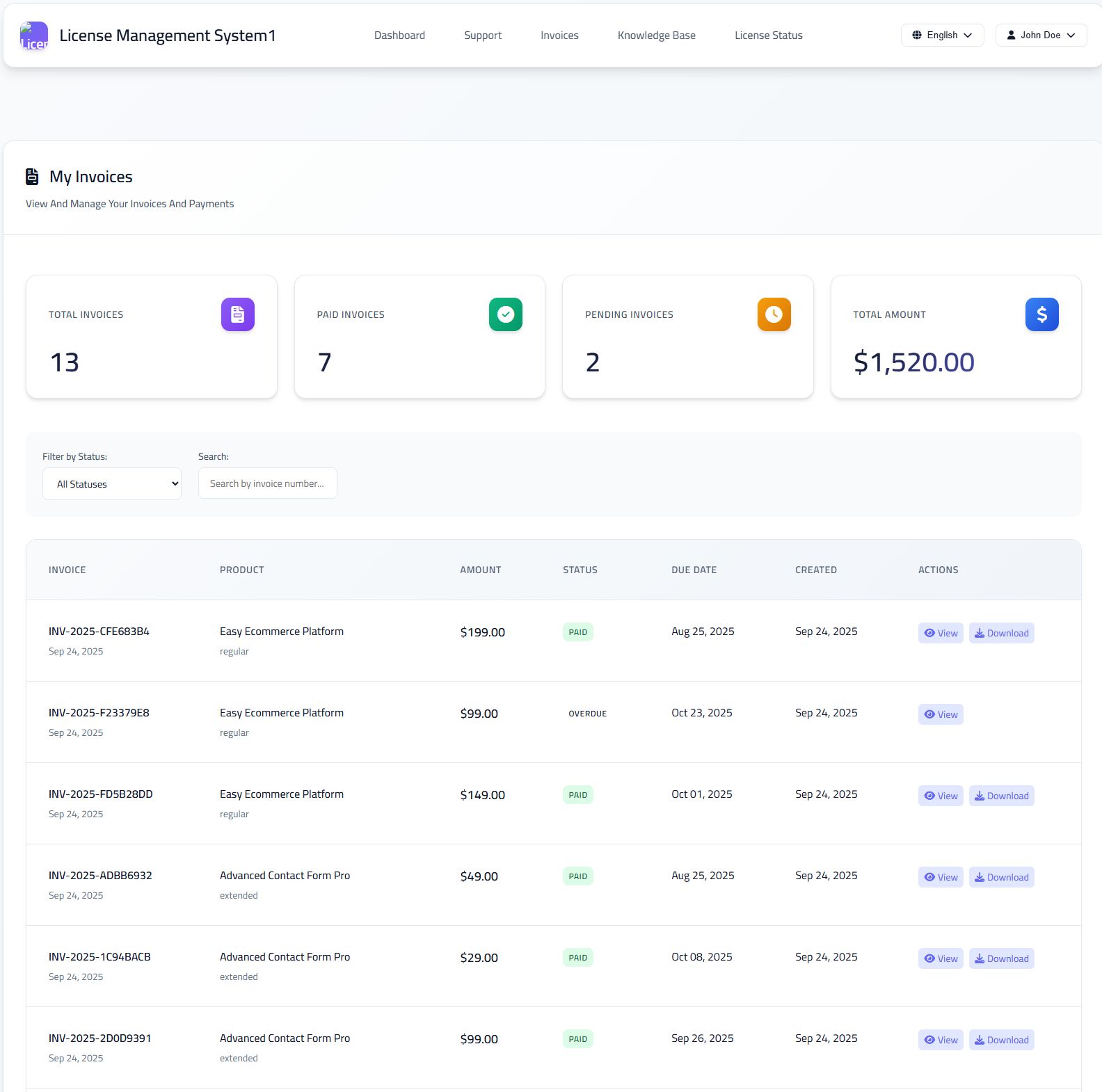 - **License API Management**: Advanced license verification, registration, and status management with comprehensive security