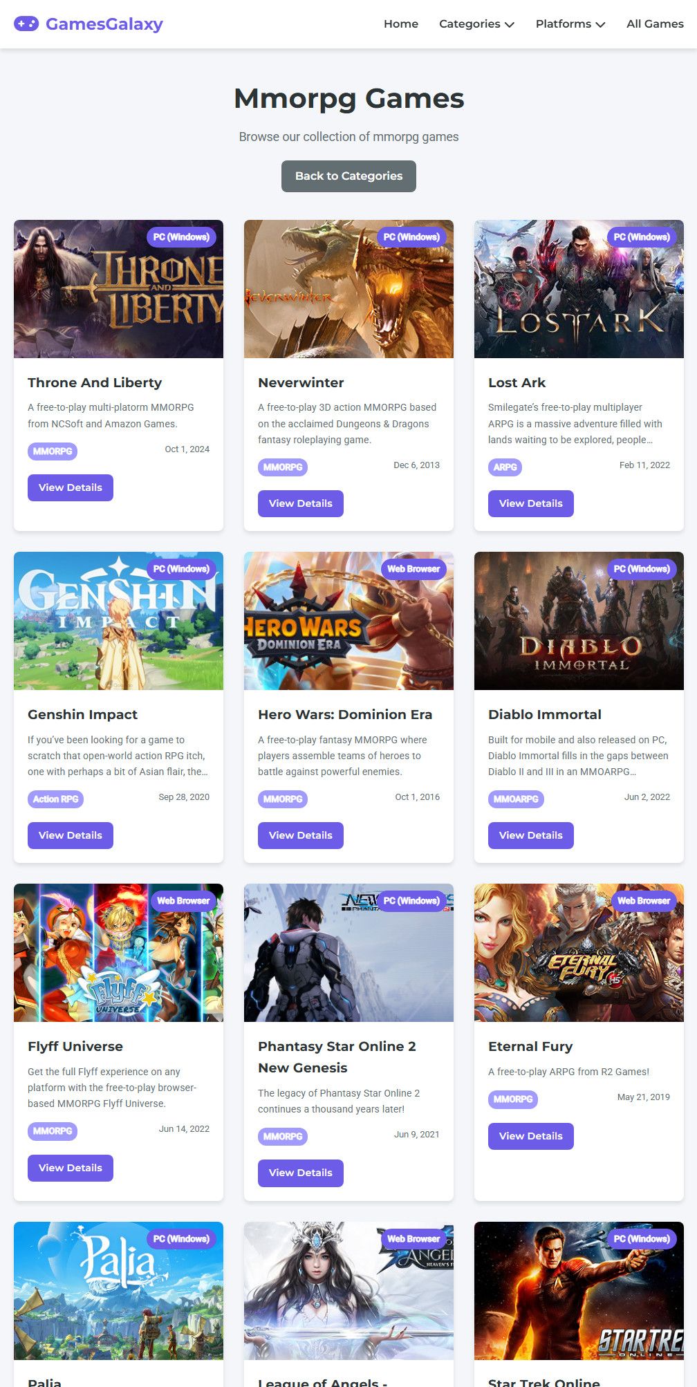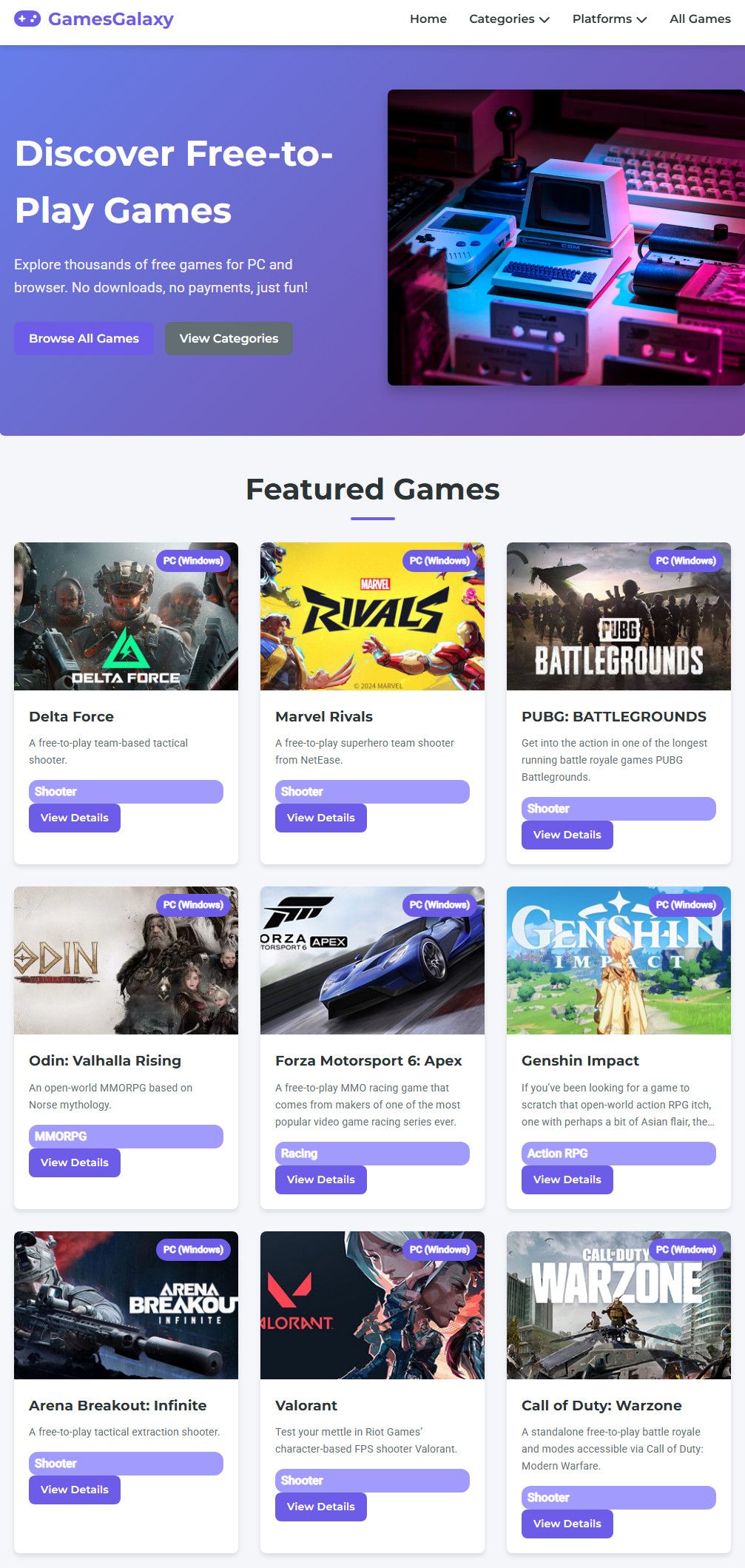 GamesGalaxy Script is a modern and responsive PHP-based gaming portal designed to showcase free-to-play games dynamically using the FreeToGame API.