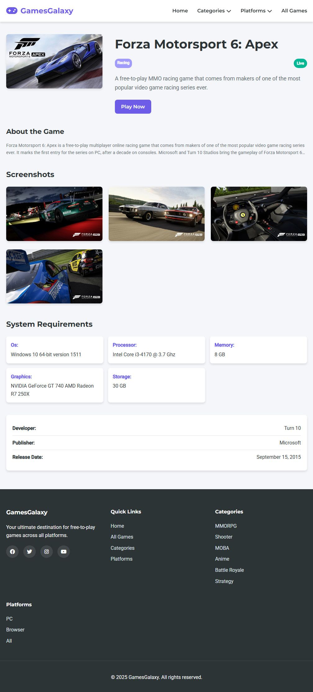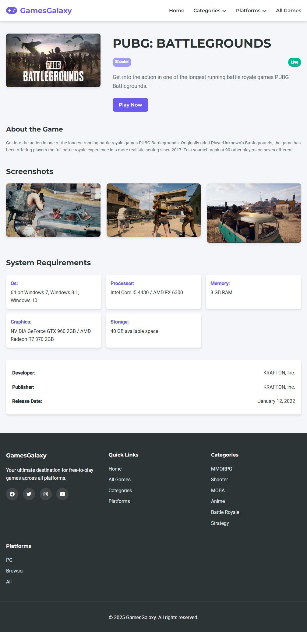 Detailed Game Pages: Comprehensive information including screenshots and system requirements