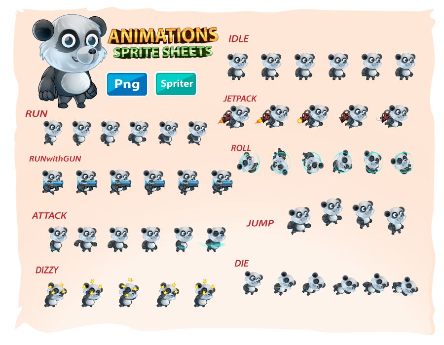 Panda 2D Game Character Sprites SheetsPanda 2D Game Character Sprites Sheets