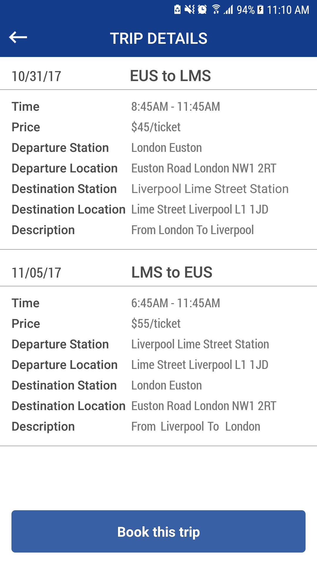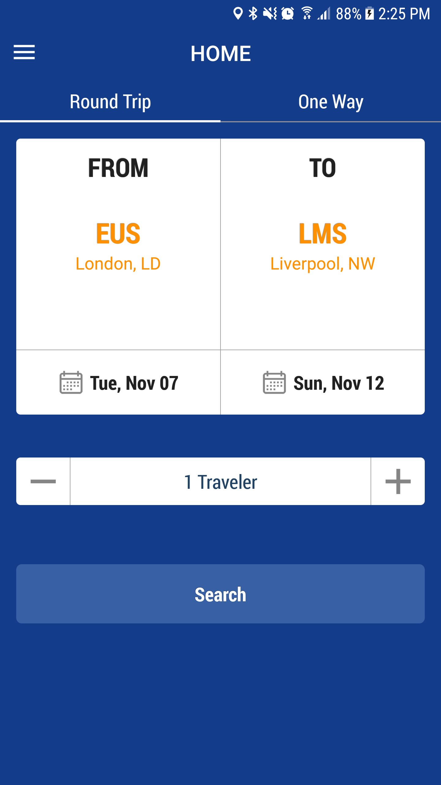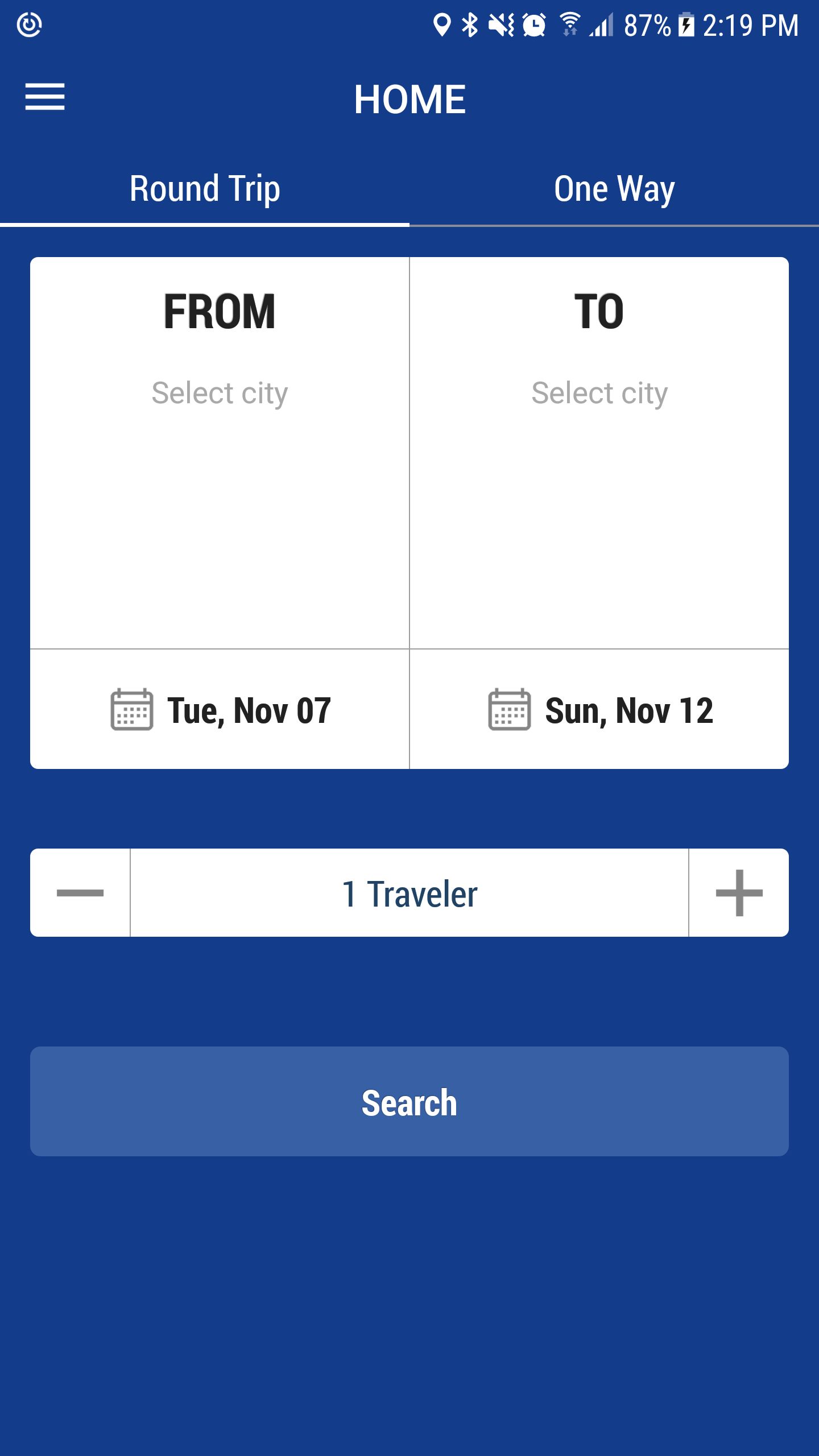 - Search bus trips with two types: One way & Round trip.