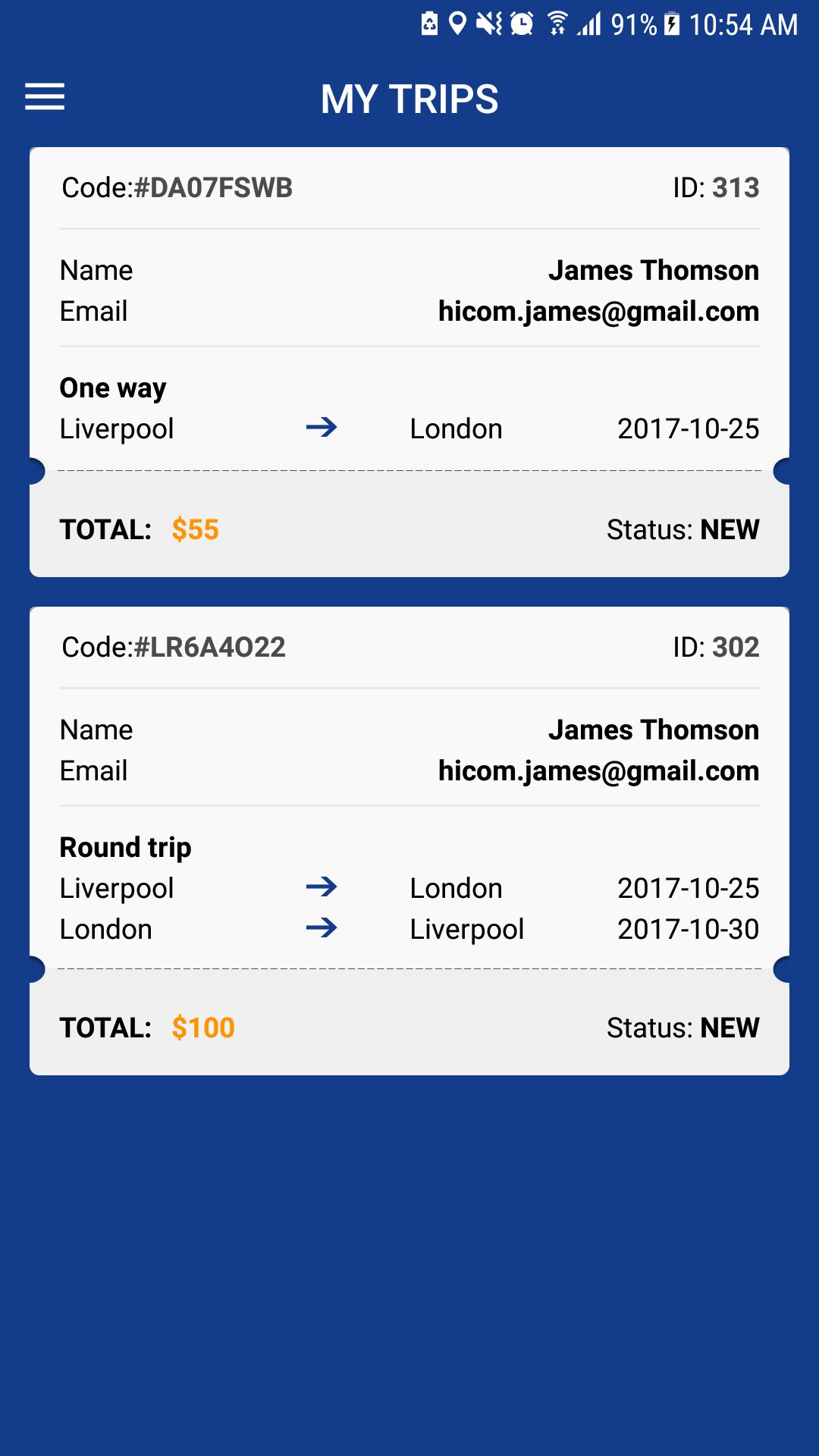 - Manage booked trips