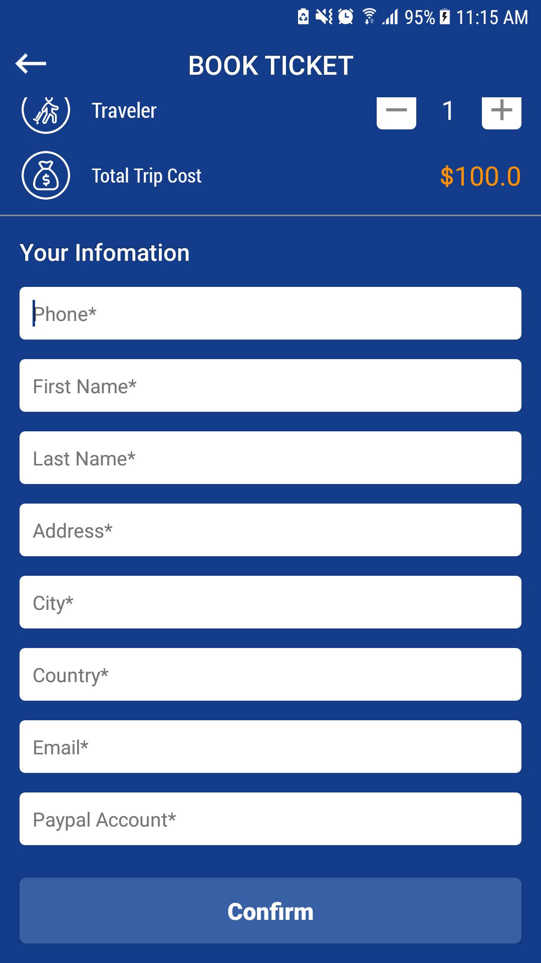 Bus ticket booking Android app version 2 is completed app in native source code for Android platform (iOS not included). The app is for passengers to reserve bus seat online. Bus stops and trips can easily be added and managed at web-based backend by admin. In comparison with the previous version, this version has more appealing User Interface (UI). I can customize for train, flight ticket booking if you make a custom request.