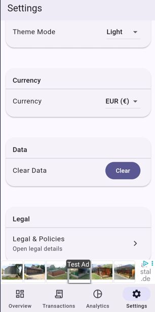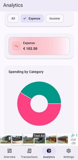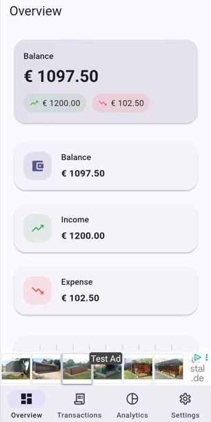 It helps users easily manage their income and expenses through a clean and modern interface — with full AdMob integration, multi-language support (EN/DE), and detailed documentation.