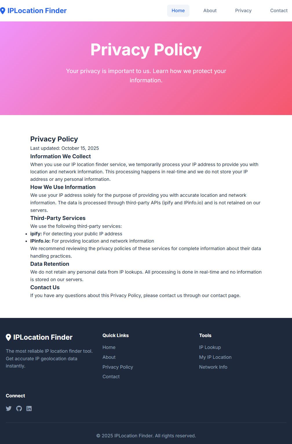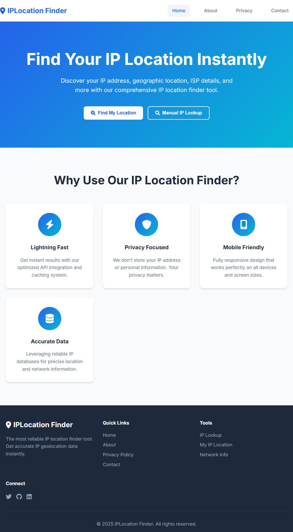 ✅ Dual API Integration – Combines ipify (for IP detection) and IPinfo.io (for location data) to deliver precise and reliable results.
