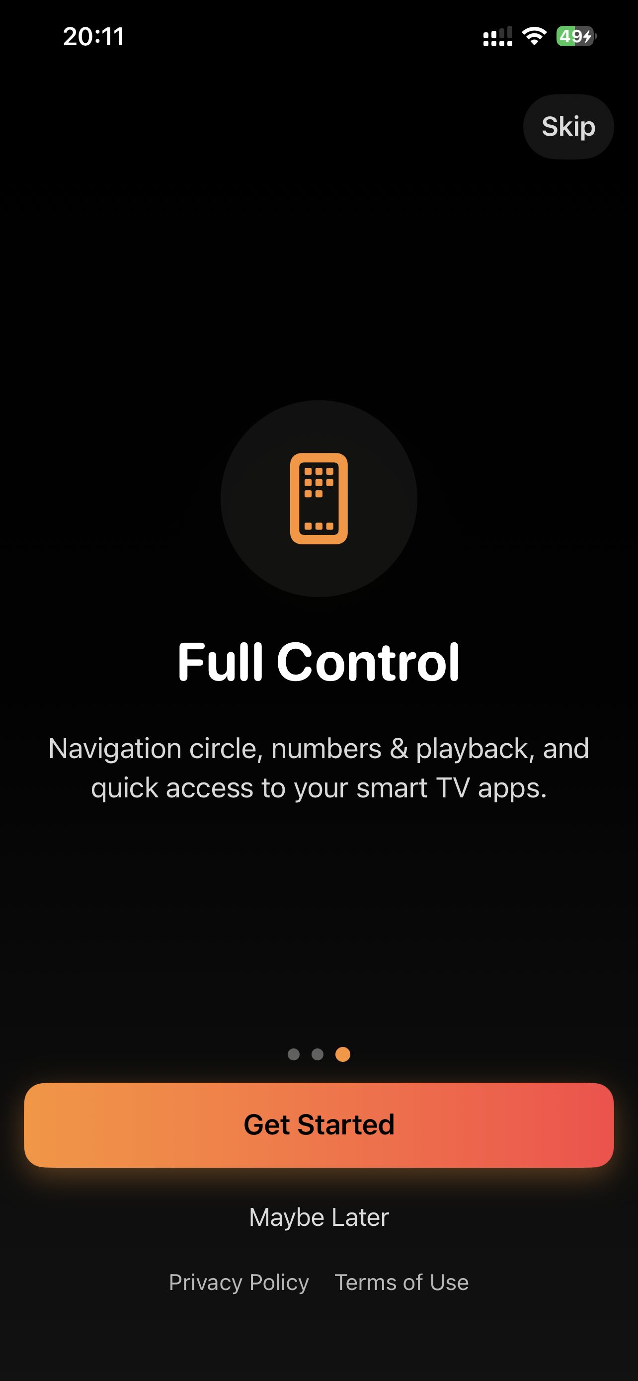 | Tags | modern design, dark ui, smart tv remote, samsung tv control, wifi controller, playback control, channel control, remote control, number pad, app launcher, device discovery, mute button, power button, ios remote |