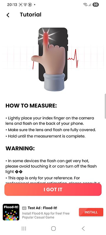 ✅ Accurate heart rate detection – Works with camera & flashlight sensor.