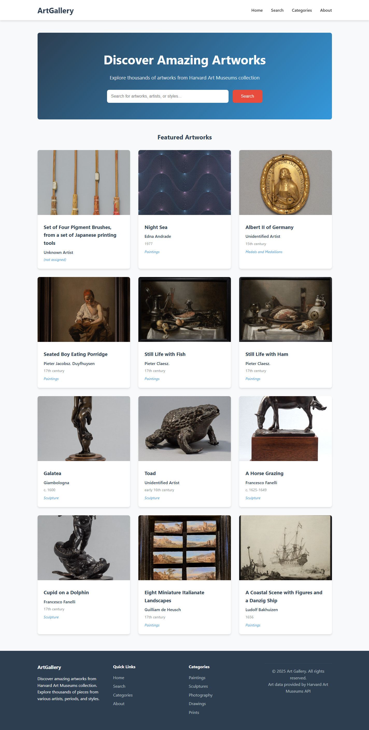 Perfect for art enthusiasts, gallery owners, or developers looking to create a beautiful and functional art showcase platform.