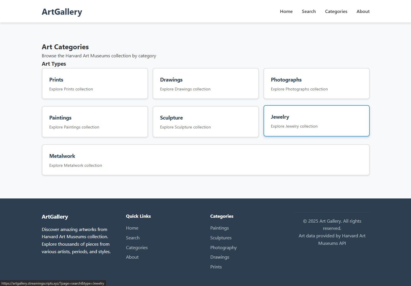 ArtGallery is a modern, responsive PHP web app that showcases artworks from the Harvard Art Museums collection.Art Gallery - Amazing Arts Collection