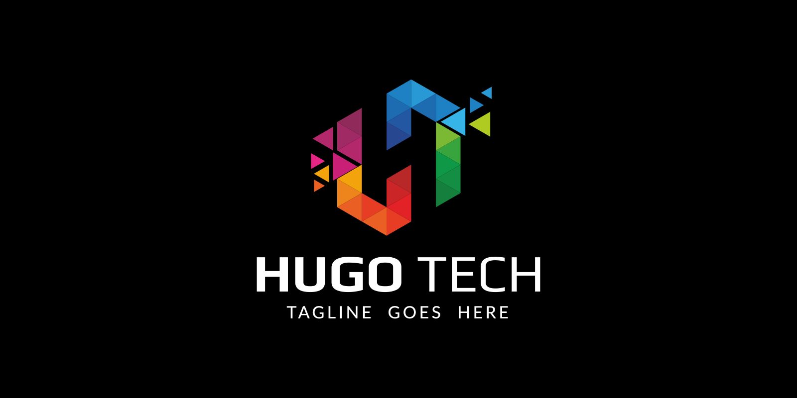 Стилизованная буква H, состоящая из многоугольников, многоцветная.