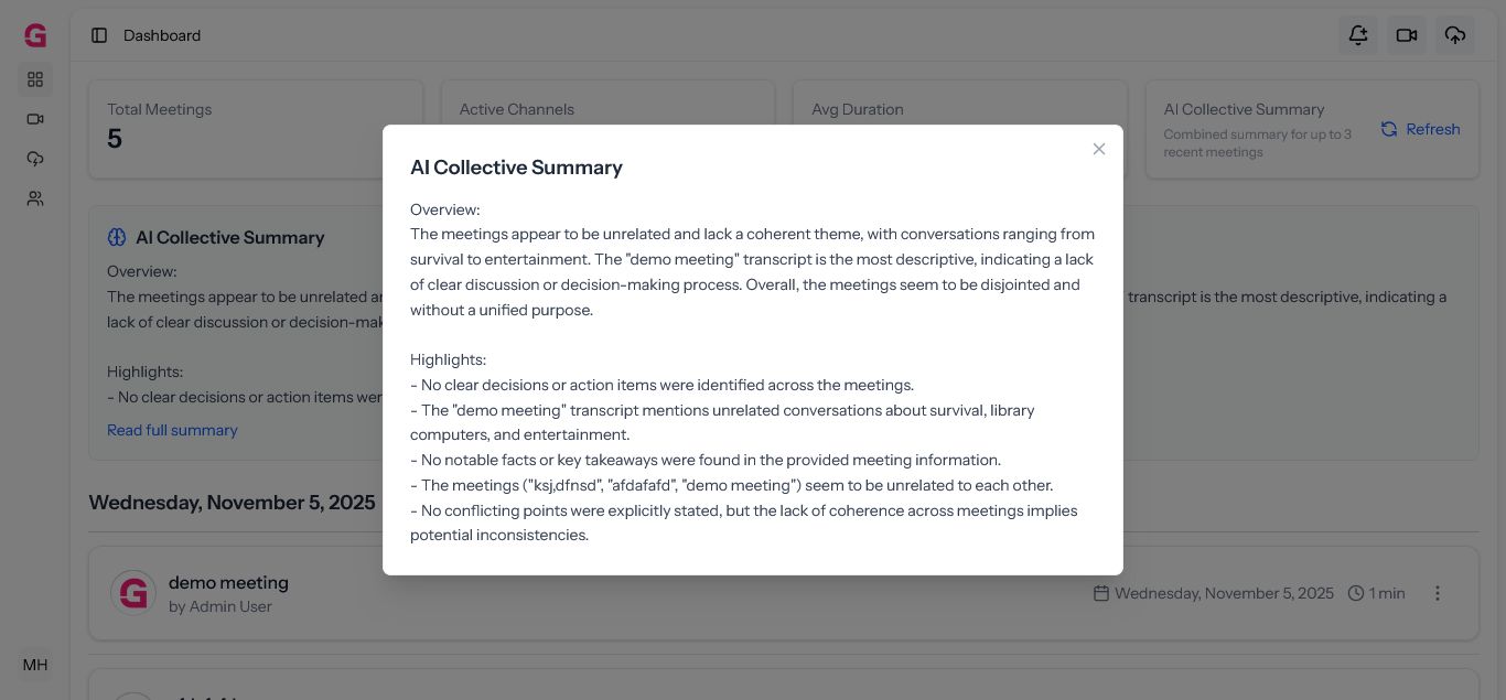 - Searchable History: Save, search, and filter past meetings easily.