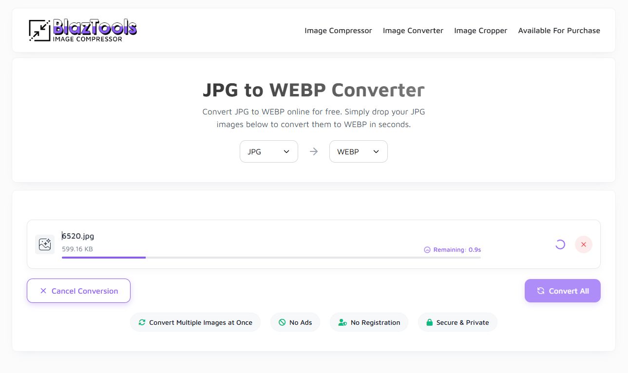- Broad input format support (JPG, PNG, GIF, WebP, BMP, TIFF, PSD, PDF, SVG, AVIF, ICO)