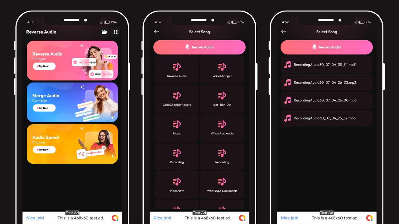 With Reverse Audio, you can select any audio file from your device or record new sounds directly in the app. Once imported, simplyReverse Audio Merge Speed Changer AdMobAds Android