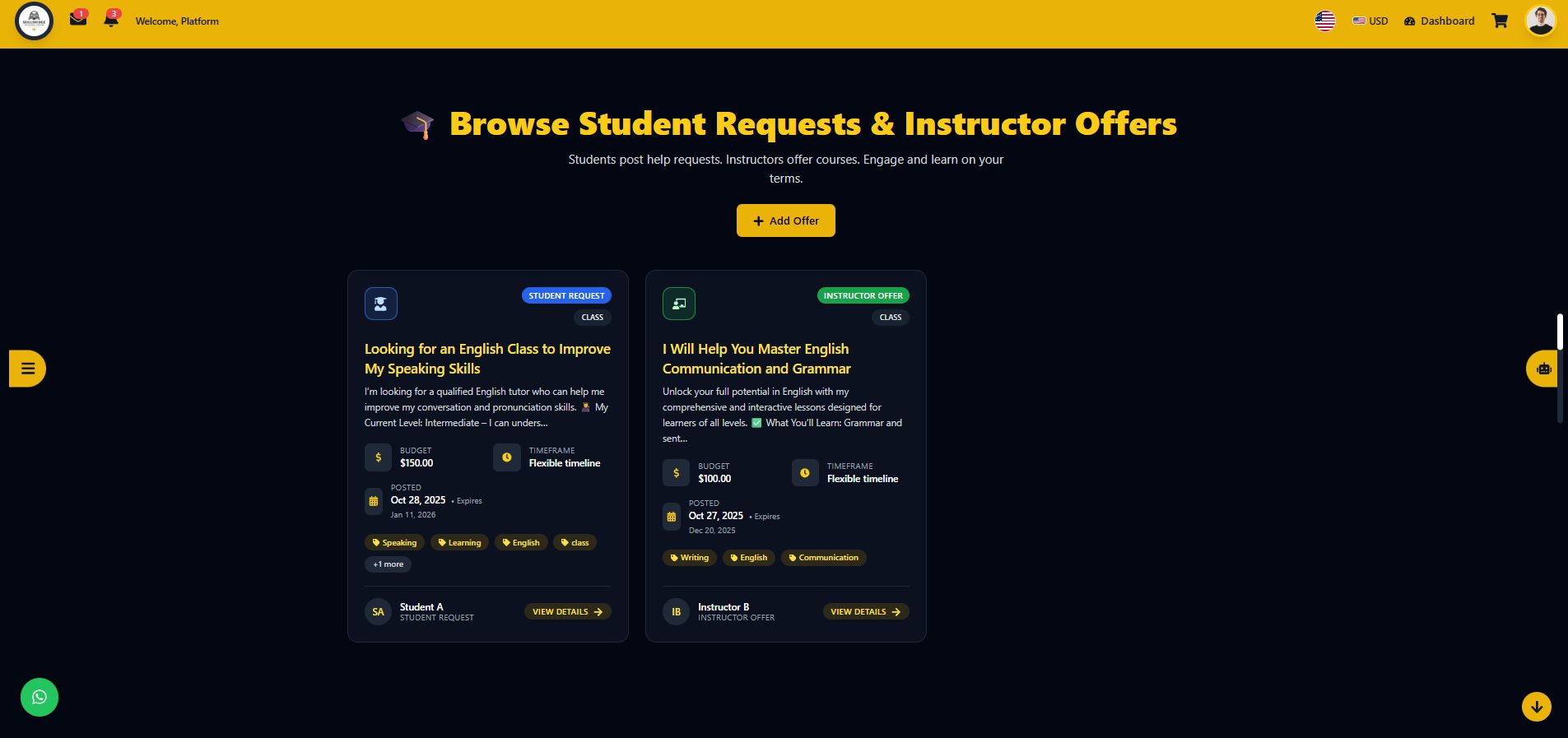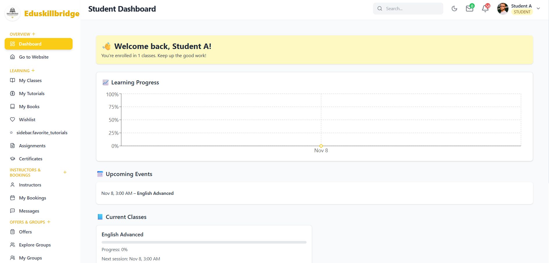 Full-stack learning and class marketplace built with Next.js (frontend) and Express/Node.js (API), packaged for fast deployment via Docker Compose.