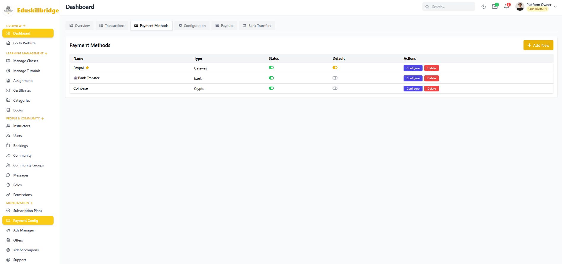 Full-stack LMS with AI model marketplace (ChatGPT/DeepSeek/Gemini), Next.js + Express API, Docker setup, PayPal/Stripe/cryptoSkillBridge AI LMS - Next.js Node Docker