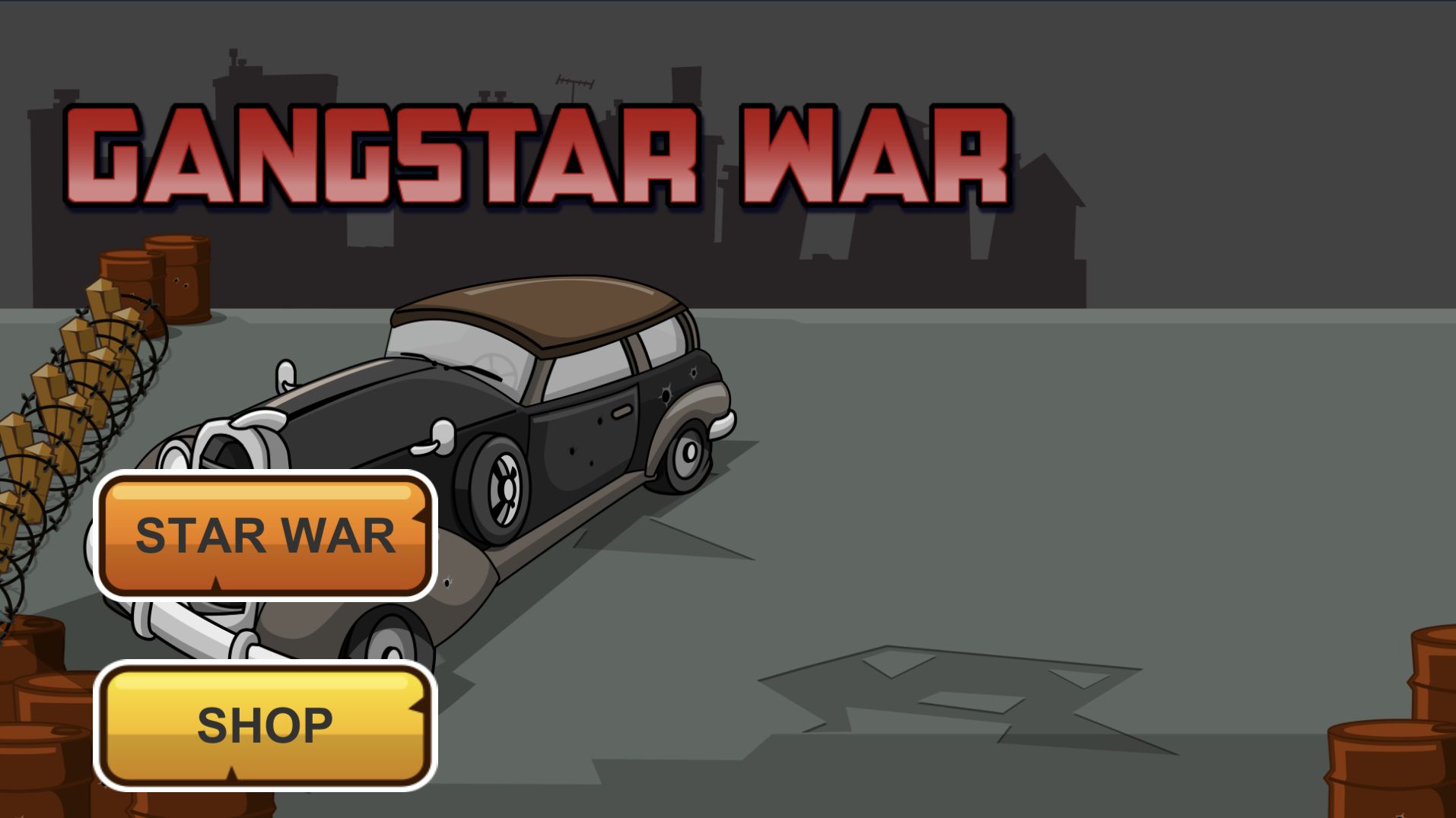 Gangstar war – is a action defense game template with an unusual design and very difficult exciting levels, so not everyone can manage to finish them, where you should stop the attack of thousand of gangster enemies. Armed with your guns, you have to destroy the waves of enemies before they cross your city!