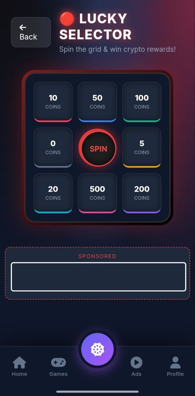 - Automated Earning System: Users earn coins by playing games, spinning the wheel, scratching cards, and watching ads.