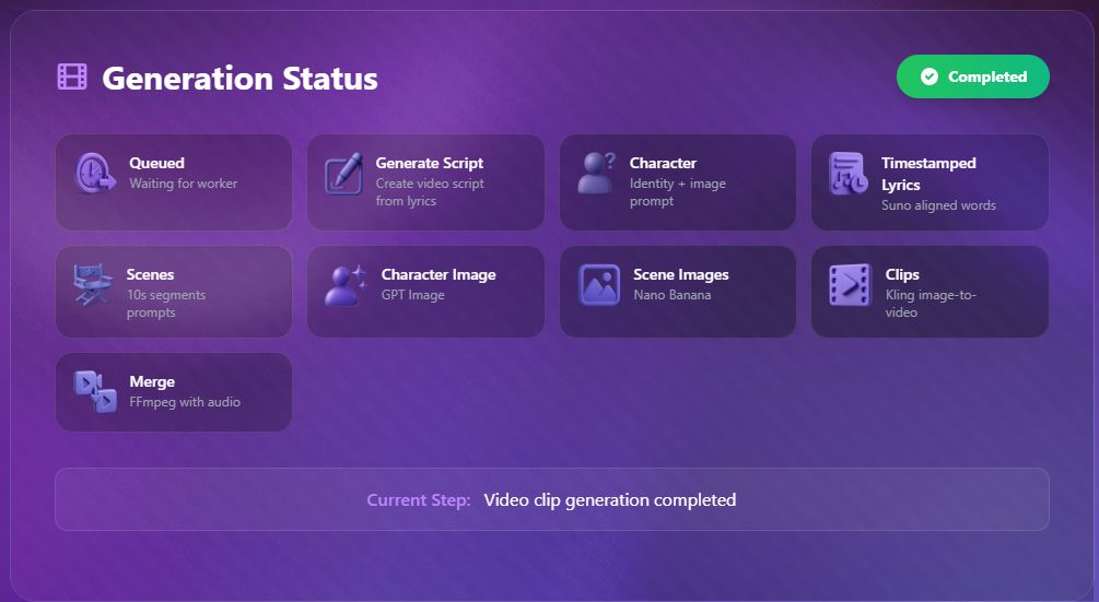 - AI Video Clip Generator (script → scenes → characters → video using Kling, Hailuo, LTX, Veo models).