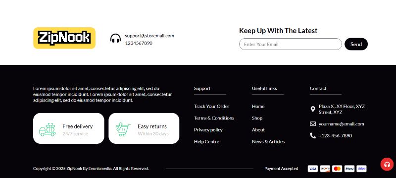 ZipNook is a modern, conversion-focused WooCommerce template kit built for laptop and electronics stores. It includes 13+ pre-designed pages and flexible components so you can launch a professional shop with Elementor in hours — no design skills required.