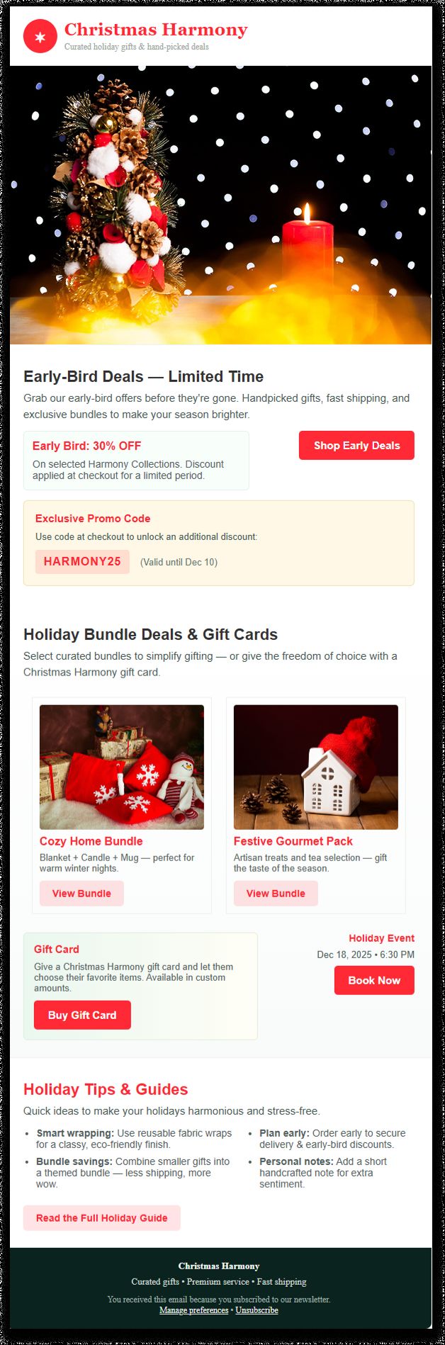 - Suitable for newsletters, promotions, holiday offers, and greetings