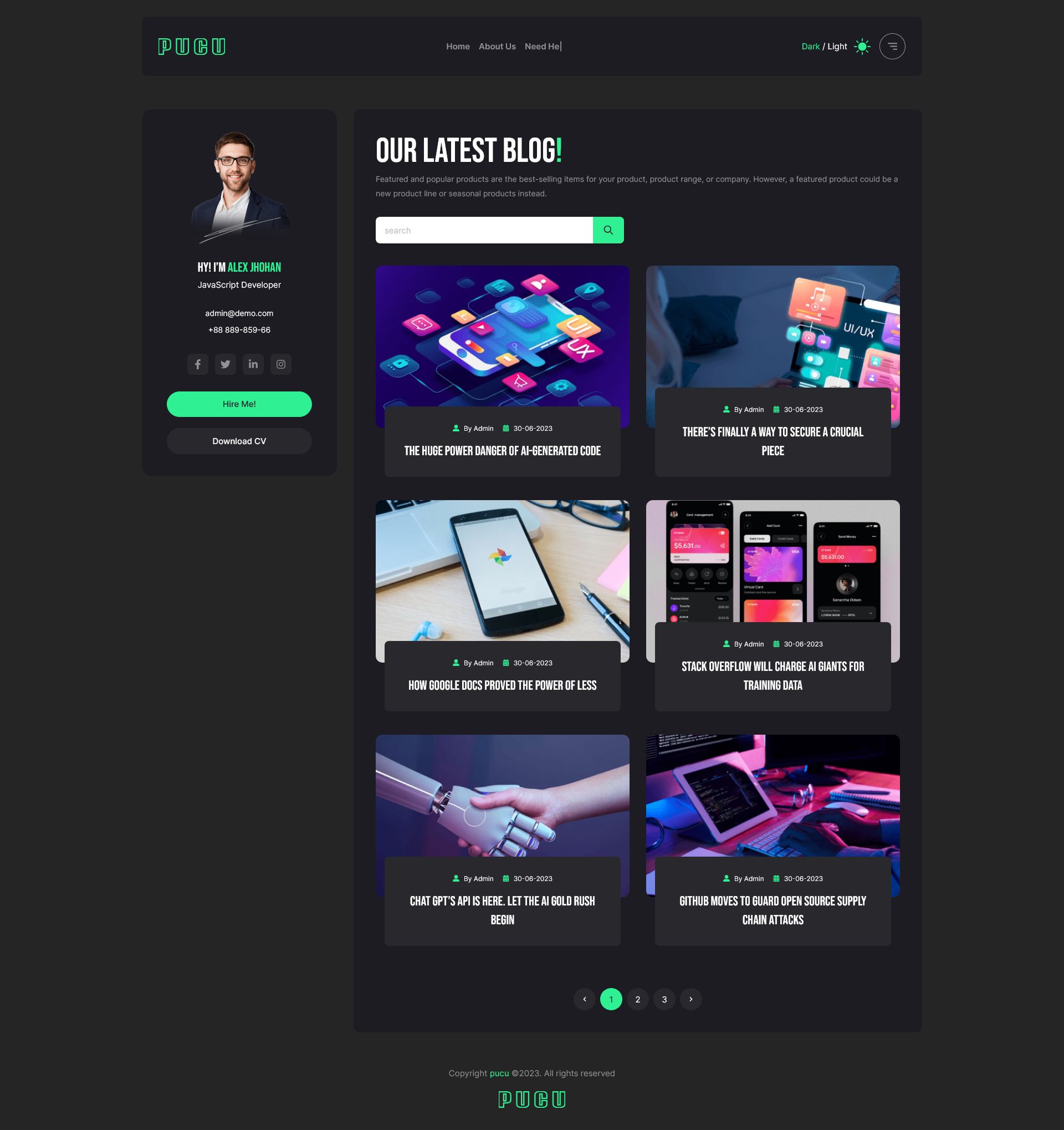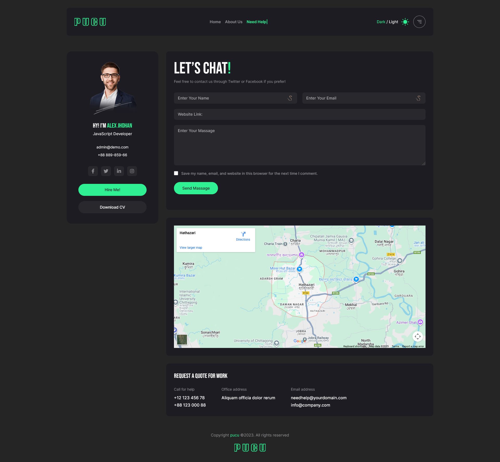Pucu is a modern, clean, and fully responsive React Portfolio Template built with Tailwind CSS. It is designed for developers, designers, creators, freelancers, and agencies who want to showcase their work in a professional and visually appealing way. With fast performance, reusable components, and a smooth UI, Pucu helps you build a standout portfolio with ease.