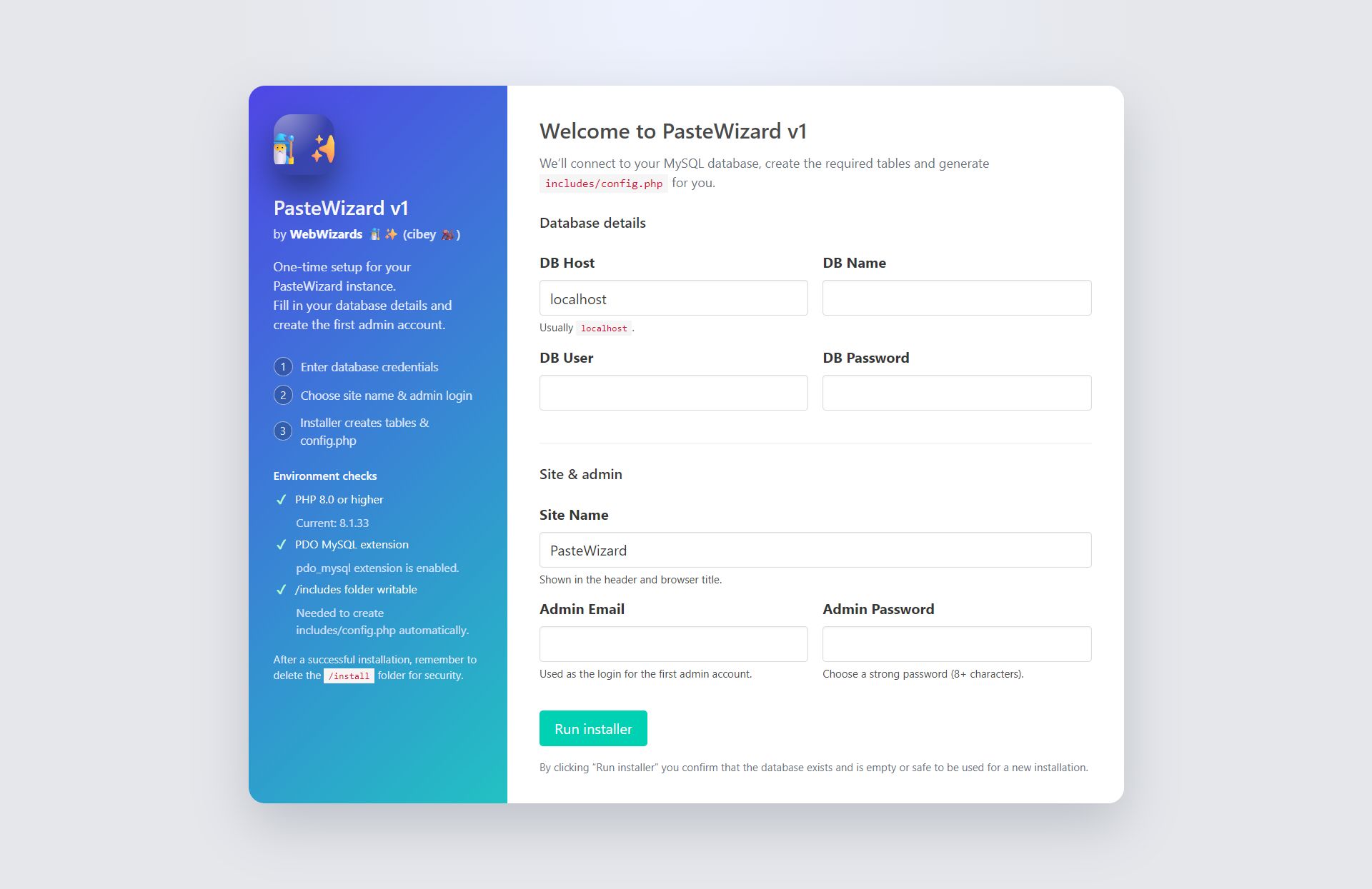 PasteWizard is a professional, production-ready PHP Pastebin Script that allows you to run your own code-sharing or note-sharing platform similar to Pastebin.
