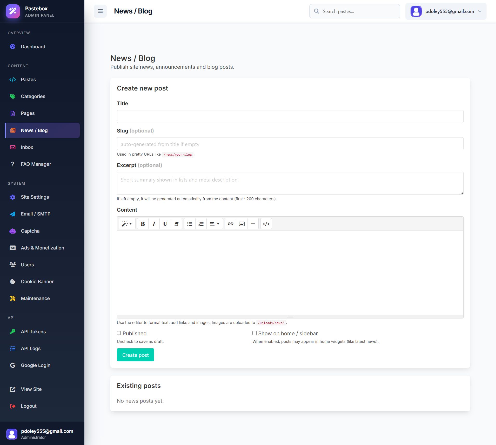 | Tags | pastebin, php mysql script, php paste script, php pastebin clone, code sharing script, text sharing script, snippet manager, code snippet tool, secure pastebin, encrypted notes script, burn after read script, syntax highlighting script, secret notes script, anonymous paste script, paste sharing platform |