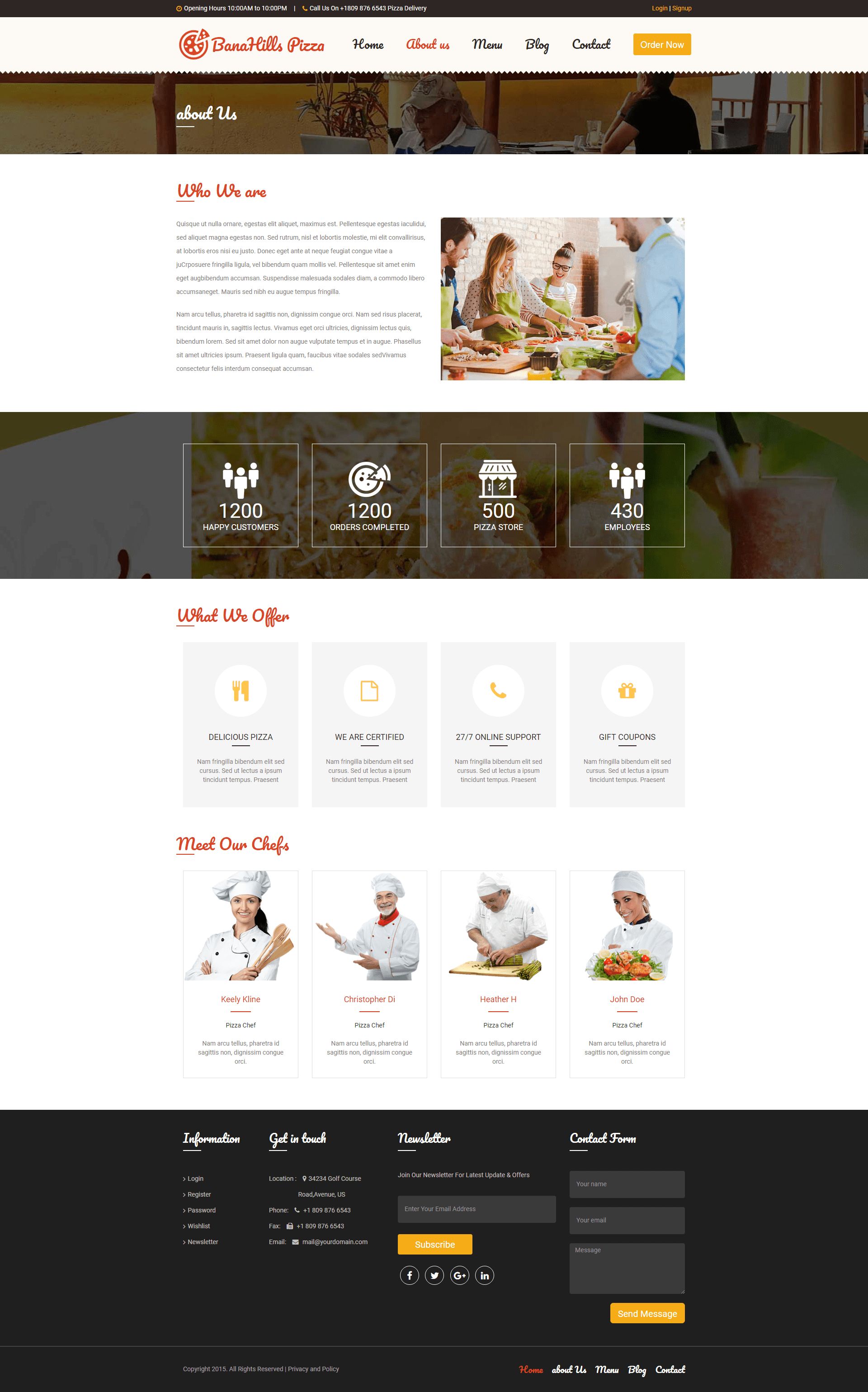 - Blog page (Some information related to products and pizza restaurants, famous chefs of the restaurant).