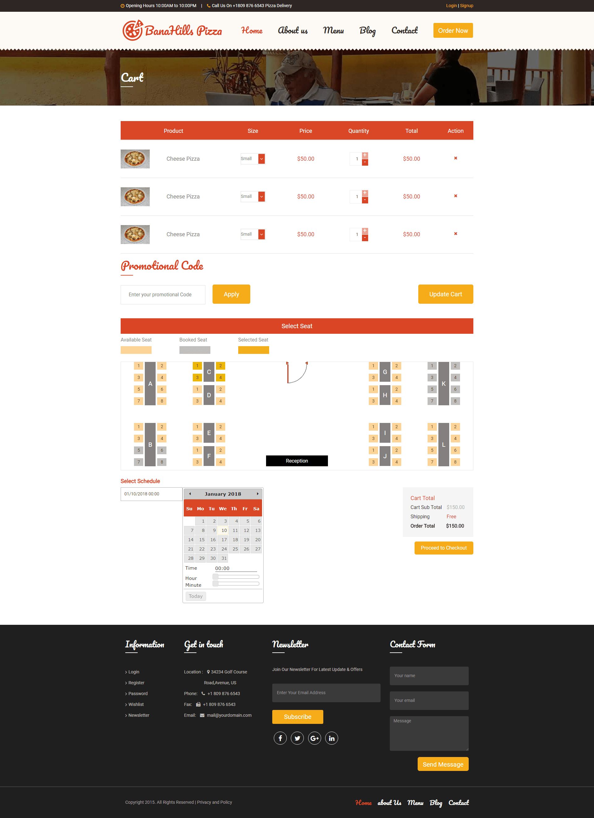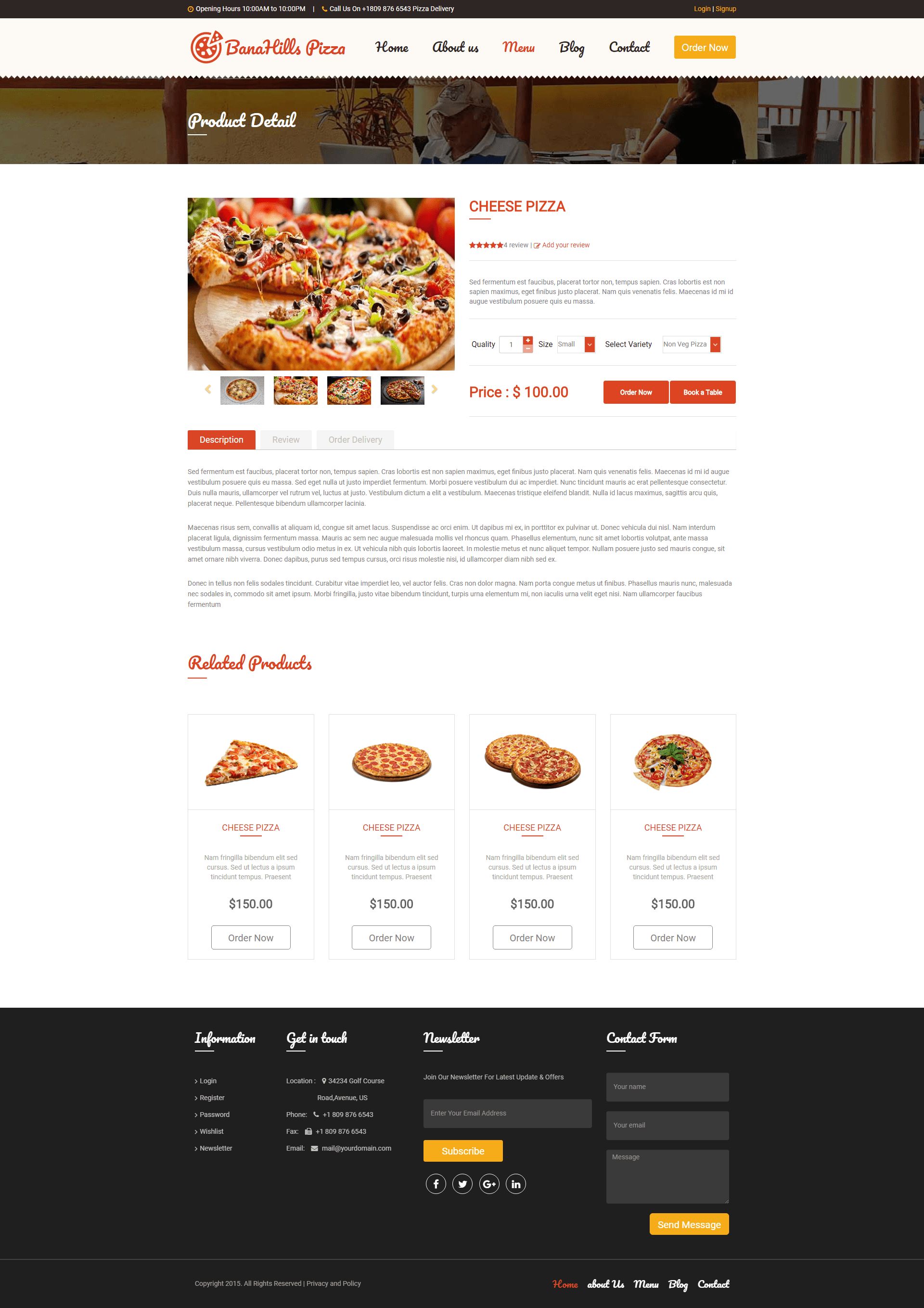 BanaHill Pizza is a template that contains 12 pages. Built by Bootstrap 3, compatible with all screen sizes.Pizza - Restaurant Table Booking HTML Template