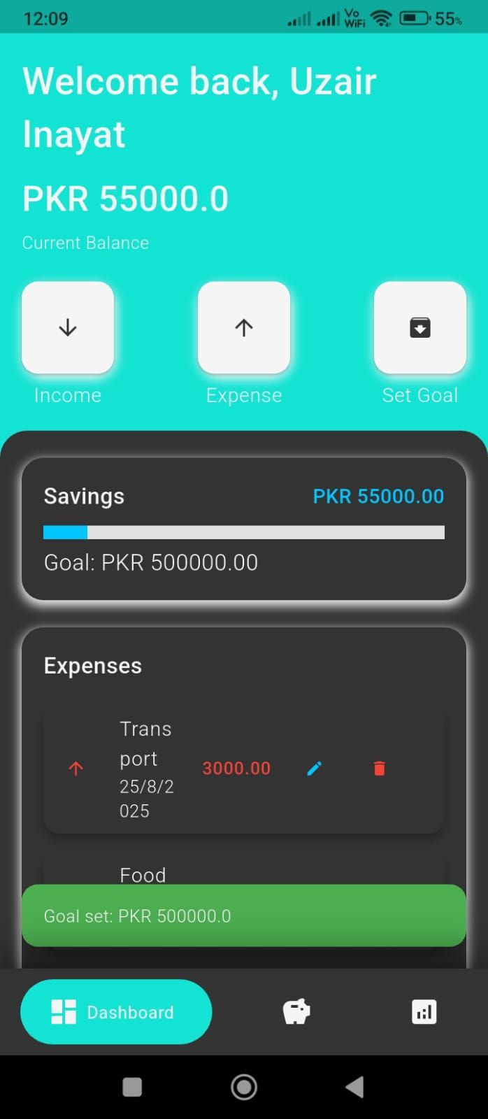 - Financial Goals Screen – Layouts to help users set and monitor their saving goals.