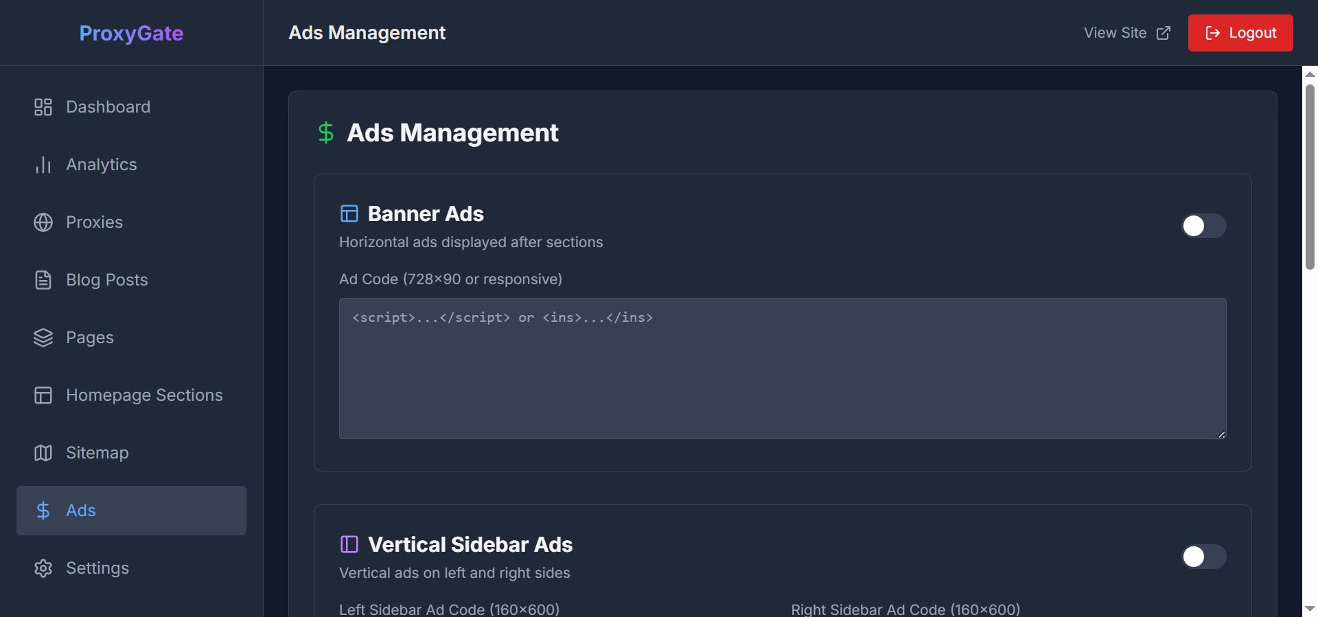 The script includes an integrated admin dashboard for managing proxy settings, pages, posts, advertisements, analytics, and general site configuration without touching the code. ProxyGate is optimized for performance, usability, and maintainability, making it a solid foundation for a production-ready proxy website.