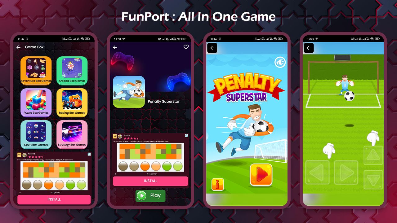 🎯 "FunPort: All in One Game brings you a collection of exciting casual, puzzle, arcade, and sports games in one app. Play anytime, anywhere without the need to download multiple apps – endless fun in one place!""FunPort: All in One Game brings you a collection of exciting casual, puzzle, arcade, and sports games in one app. Play anytime, anywhere without the need to download multiple apps – endless fun in one place!"