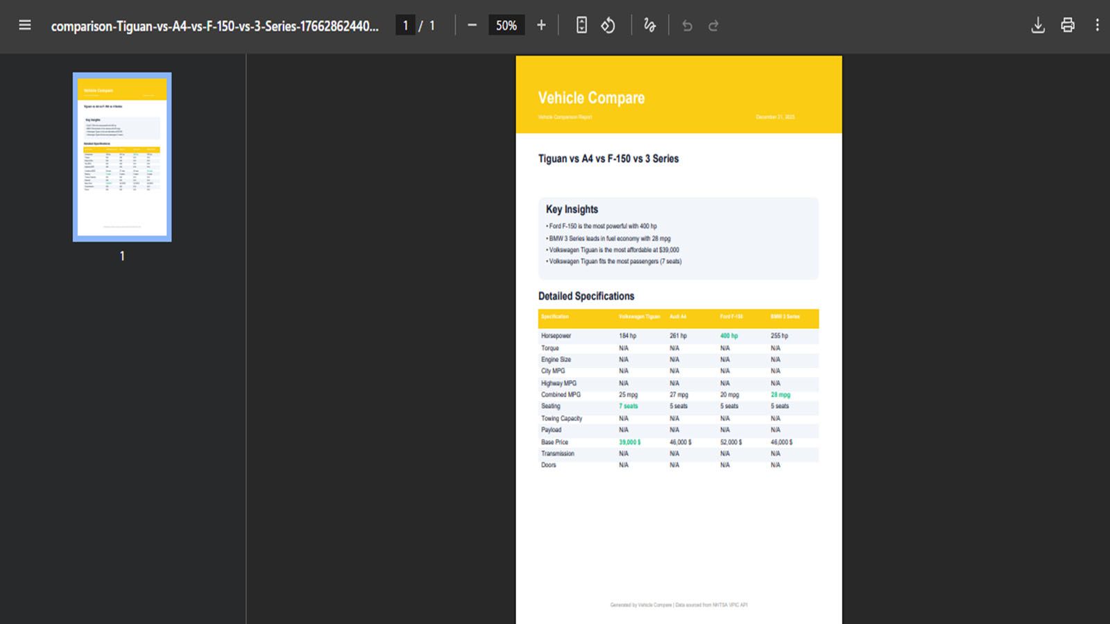 - Side-by-Side Comparison — Compare up to 4 vehicles