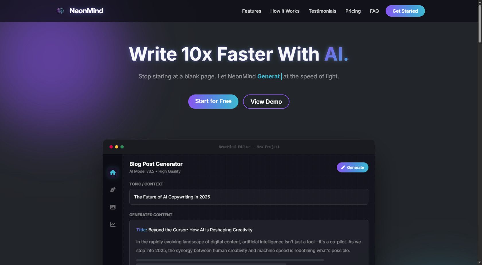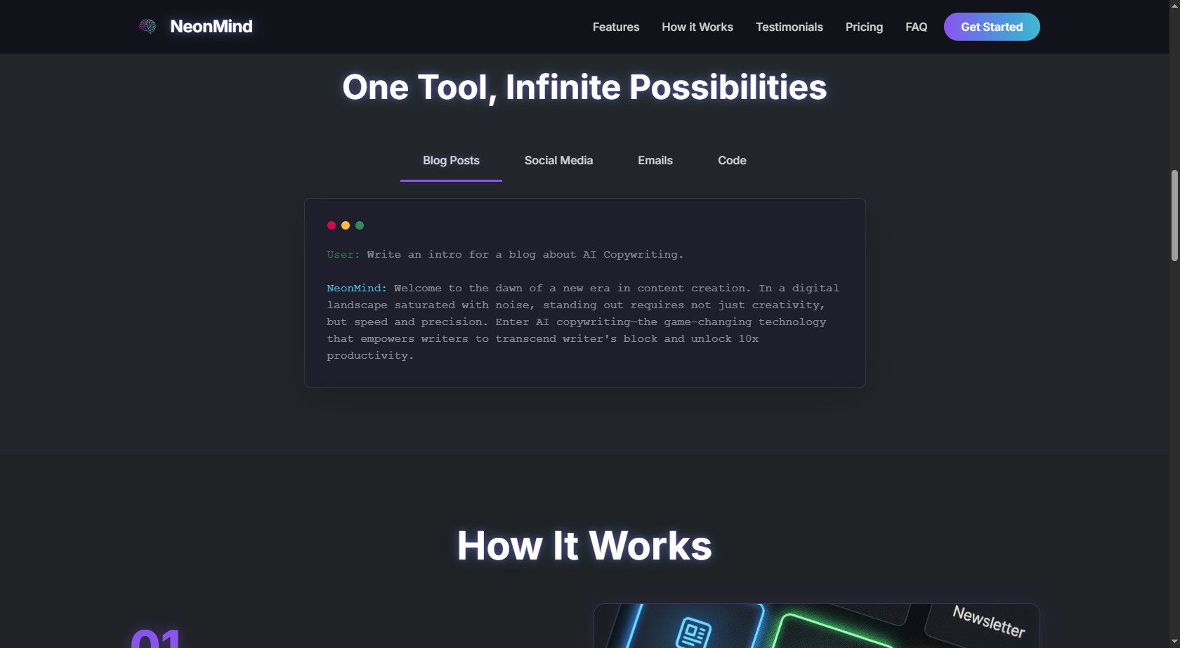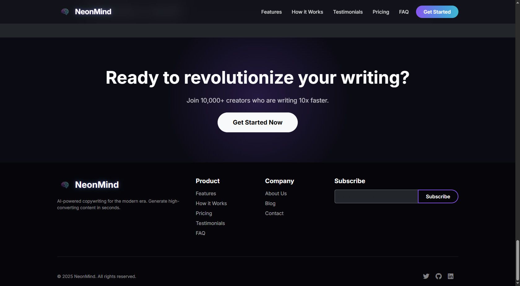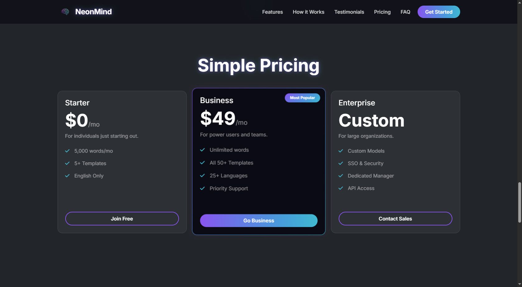 NeonMind - AI SaaS Landing Page TemplateNeonMind - AI SaaS Landing Page Template