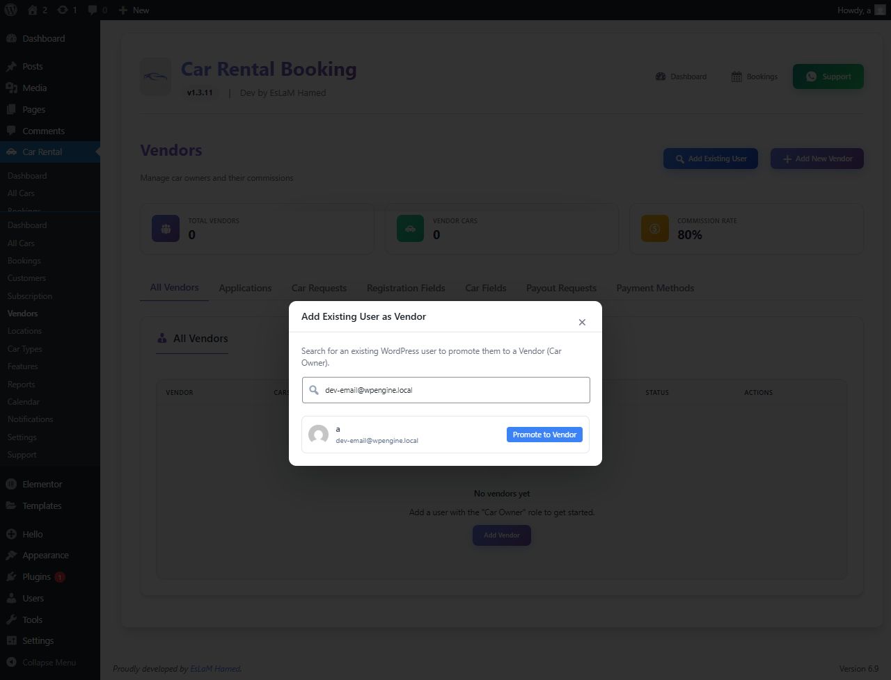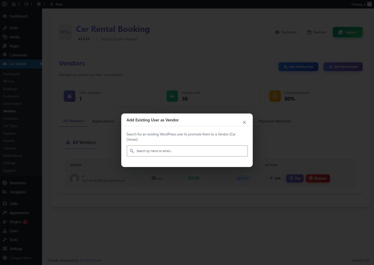 - 👥 Multi-Vendor Marketplace: Allow third-party car owners to register, list their vehicles, and earn commissions. Includes a dedicated Vendor Dashboard.