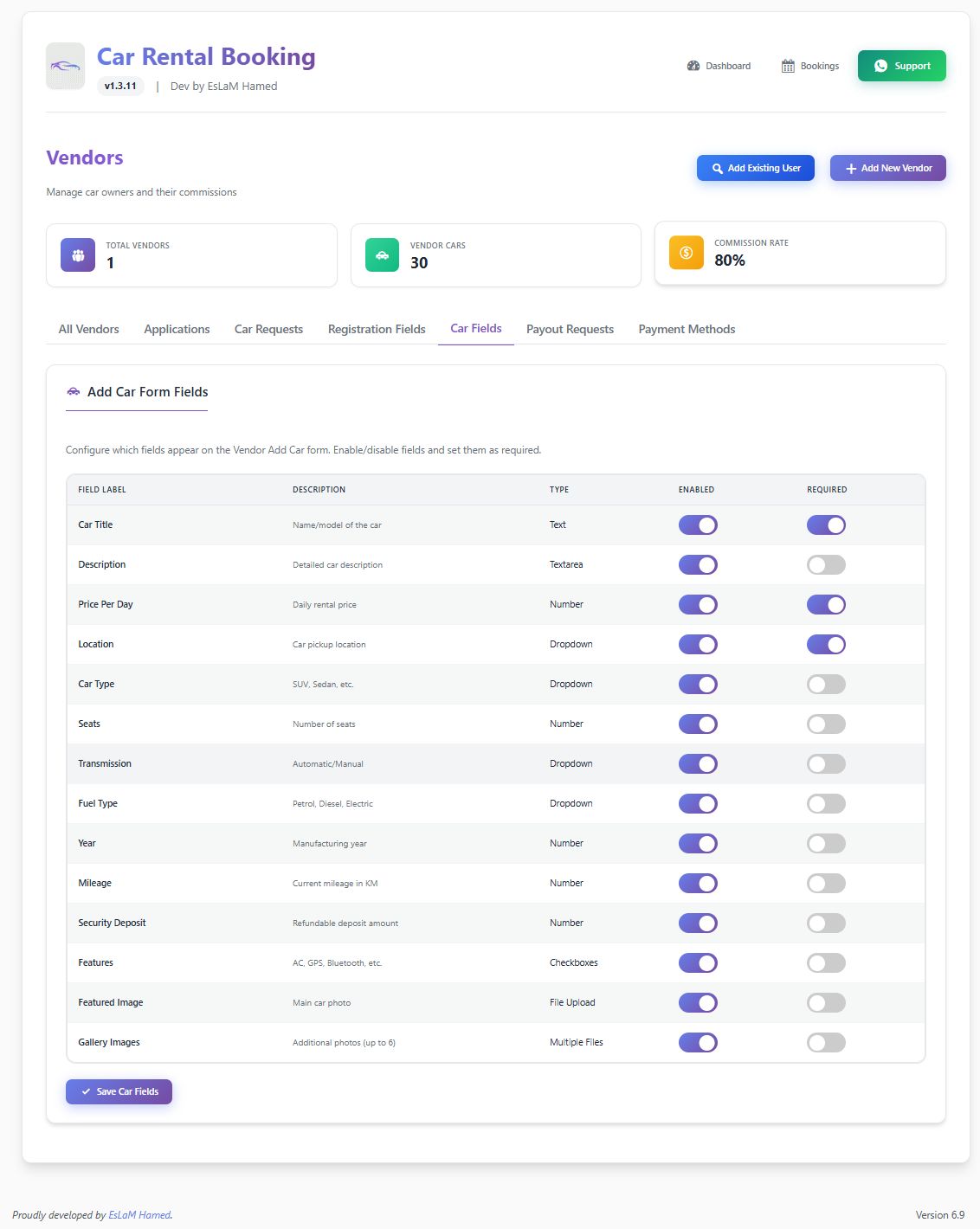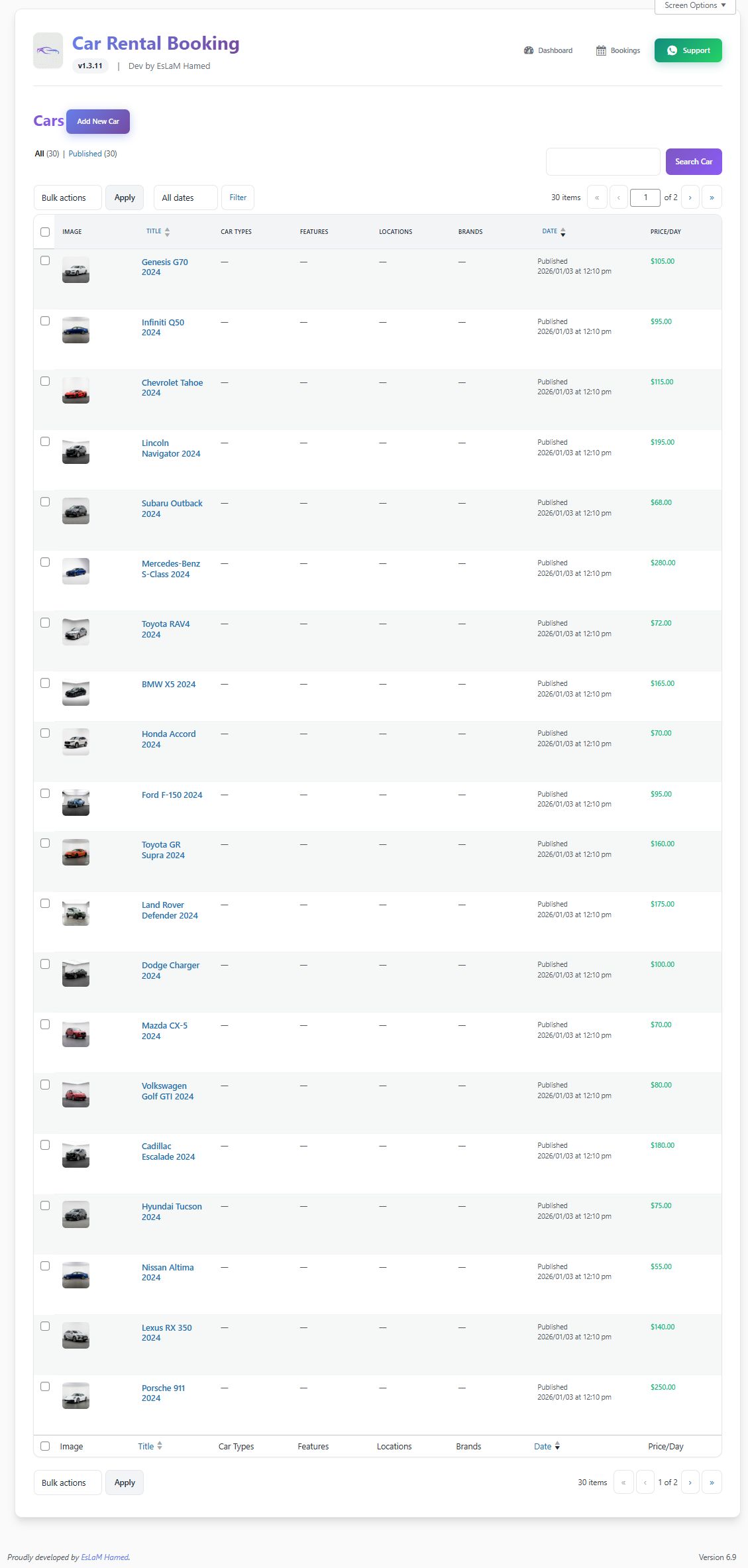 Whether you are a single rental agency or building a multi-vendor marketplace, this plugin handles everything: Fleet Management, Dynamic Pricing, GPS Tracking, Visual Damage Inspection, and Financial Management.